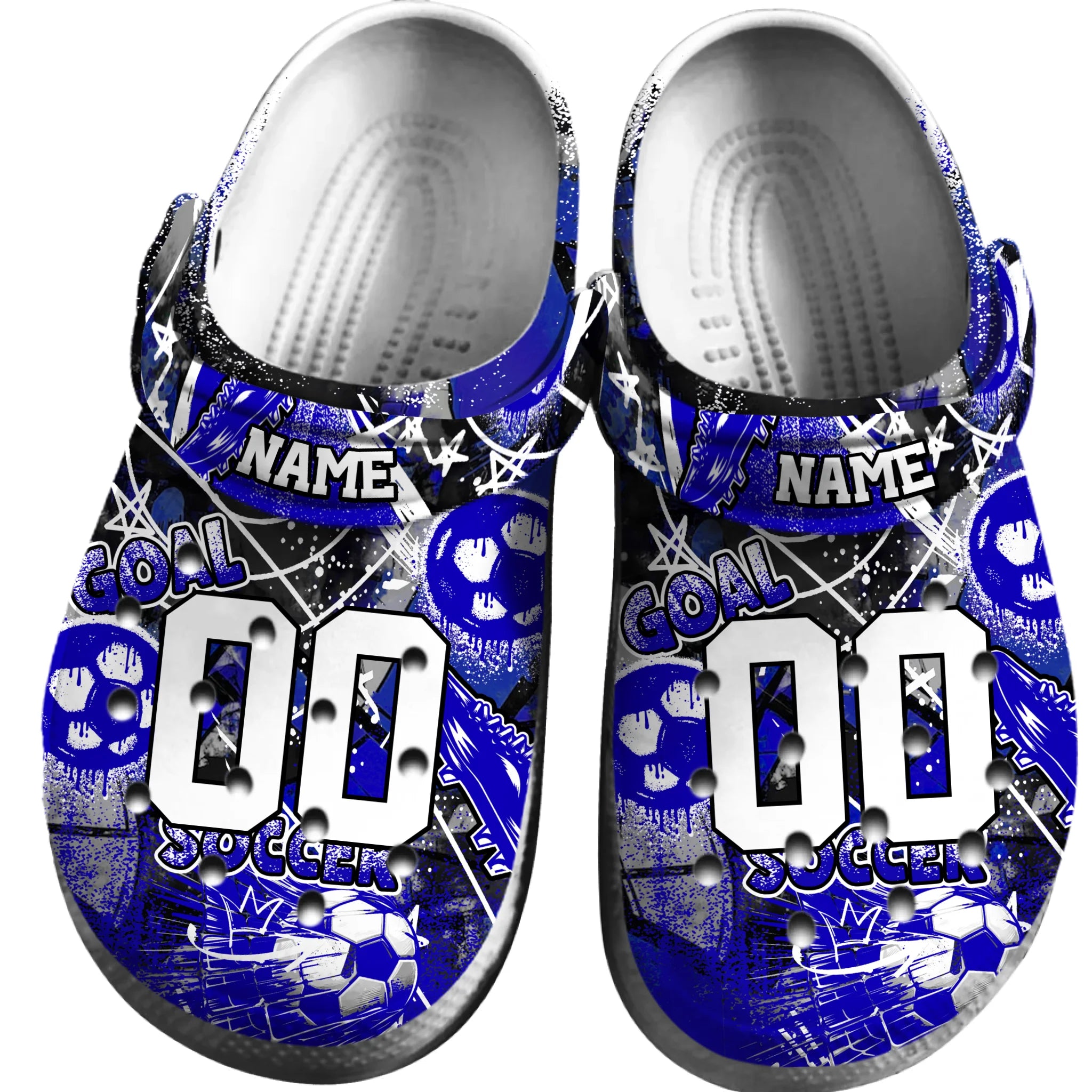 Merchidea Blue Graffiti Soccer Sport Crocs Crocband Clogs Shoes Comfortable For Men Women and Kids