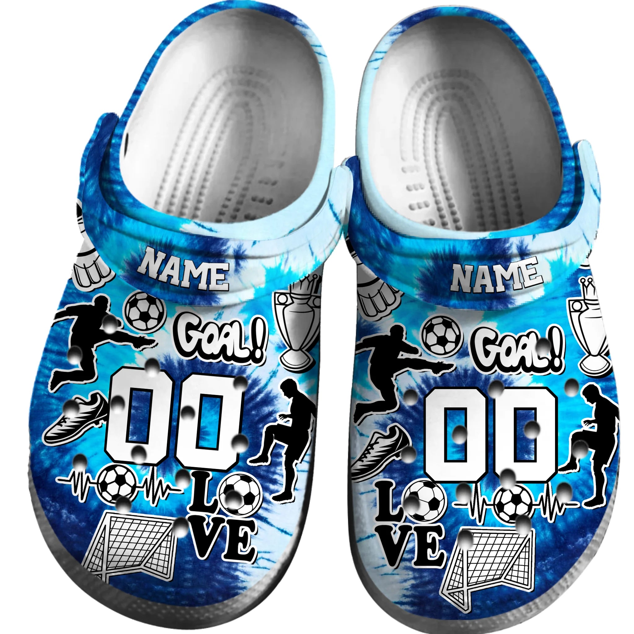 Merchidea Blue Tie-Dye Soccer Sport Crocs Crocband Clogs Shoes Comfortable For Men Women and Kids