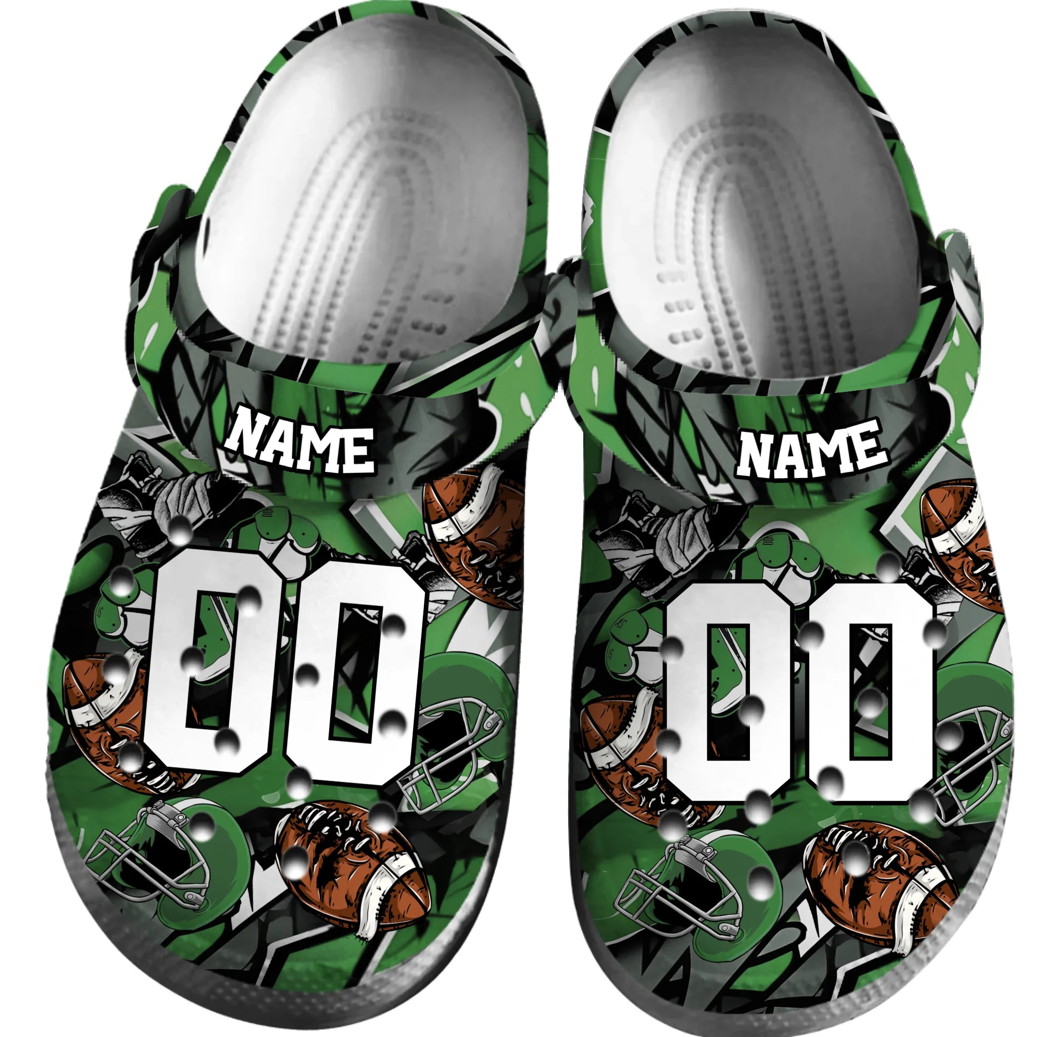 Merchidea Green Graffiti Football Sport Crocs Crocband Clogs Shoes Comfortable For Men Women and Kids