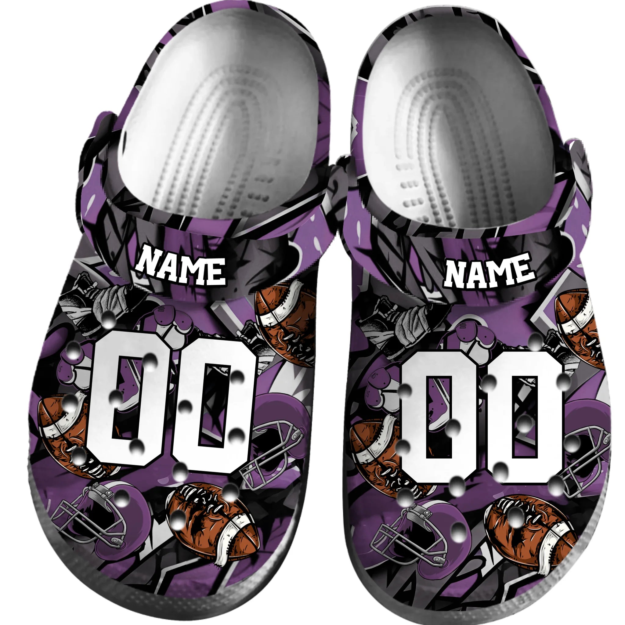 Merchidea Purple Graffiti Football Sport Crocs Crocband Clogs Shoes Comfortable For Men Women and Kids