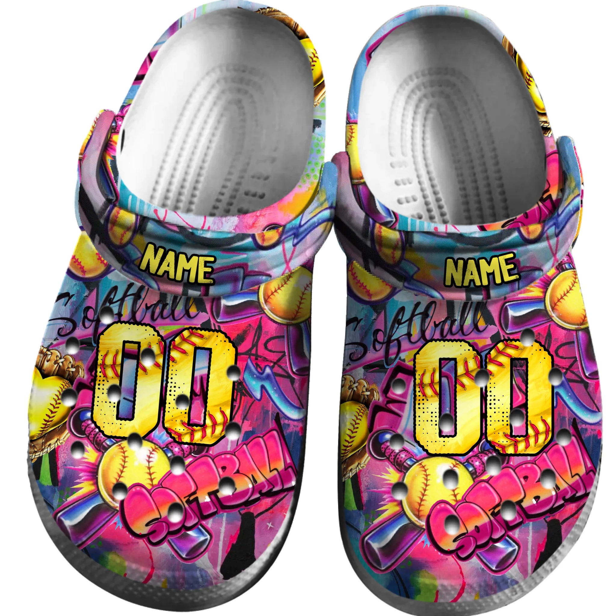 Merchidea Street Graffiti Softball Sport Crocs Crocband Clogs Shoes Comfortable For Men Women and Kids