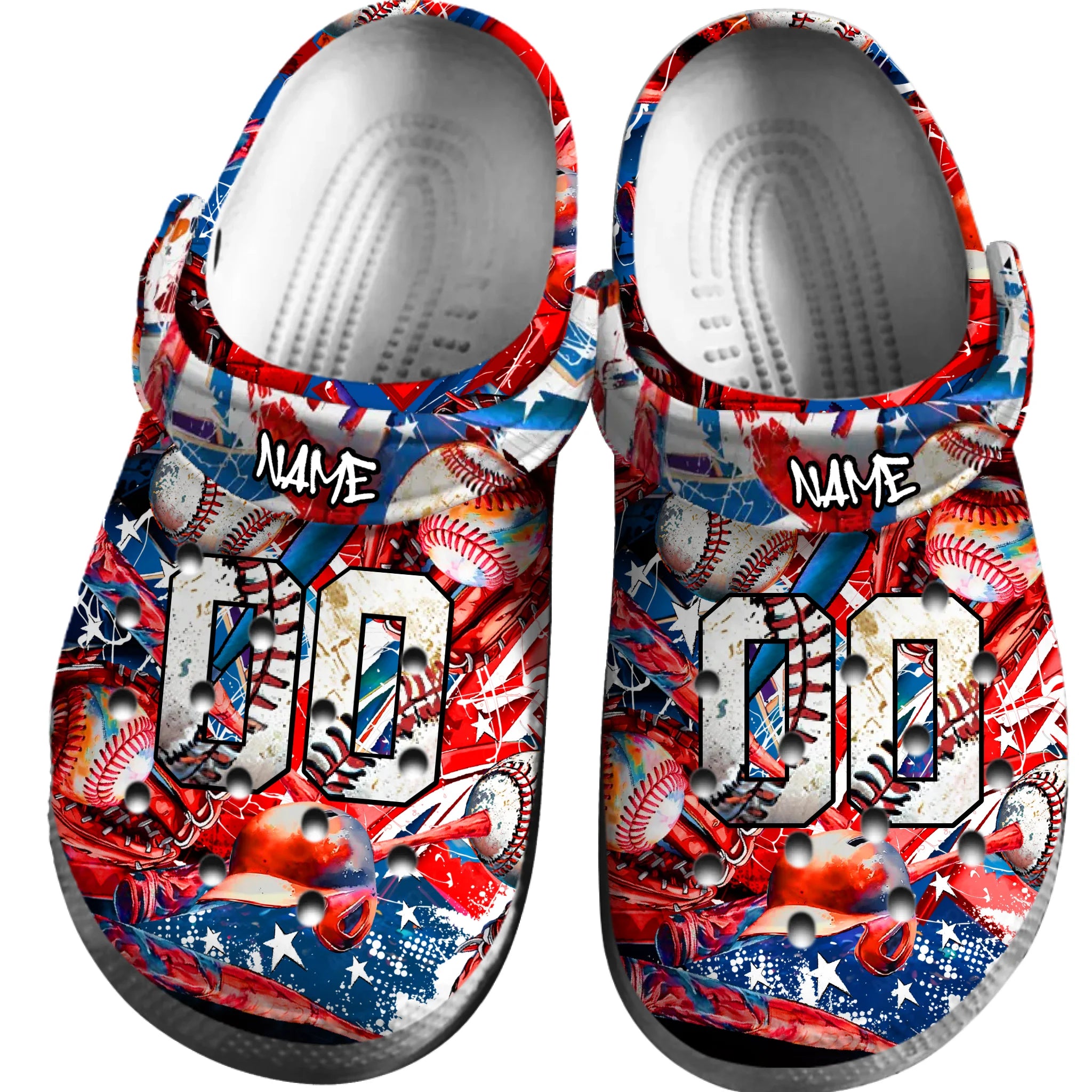Merchidea USA Graffiti Baseball Sport Crocs Crocband Clogs Shoes Comfortable For Men Women and Kids
