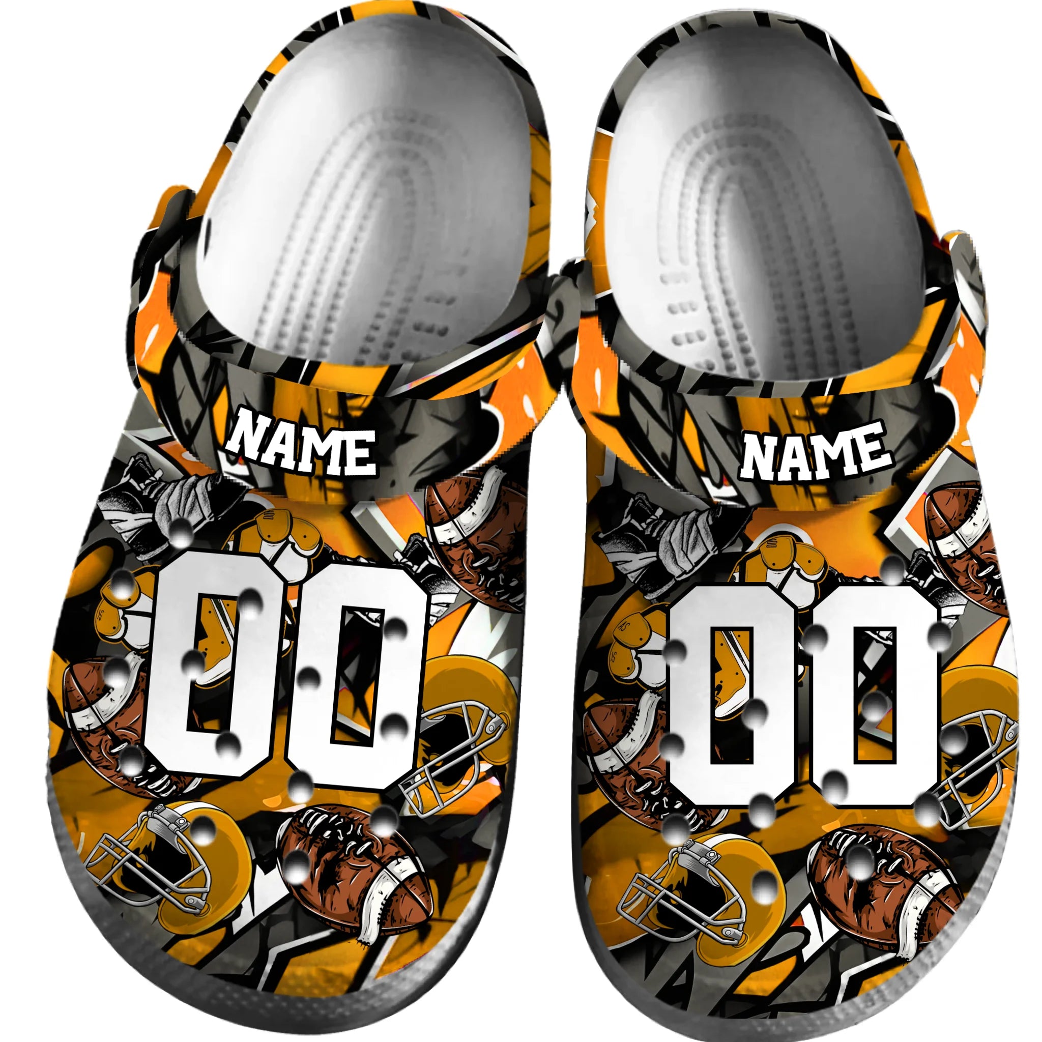 Merchidea Yellow Graffiti Football Sport Crocs Crocband Clogs Shoes Comfortable For Men Women and Kids