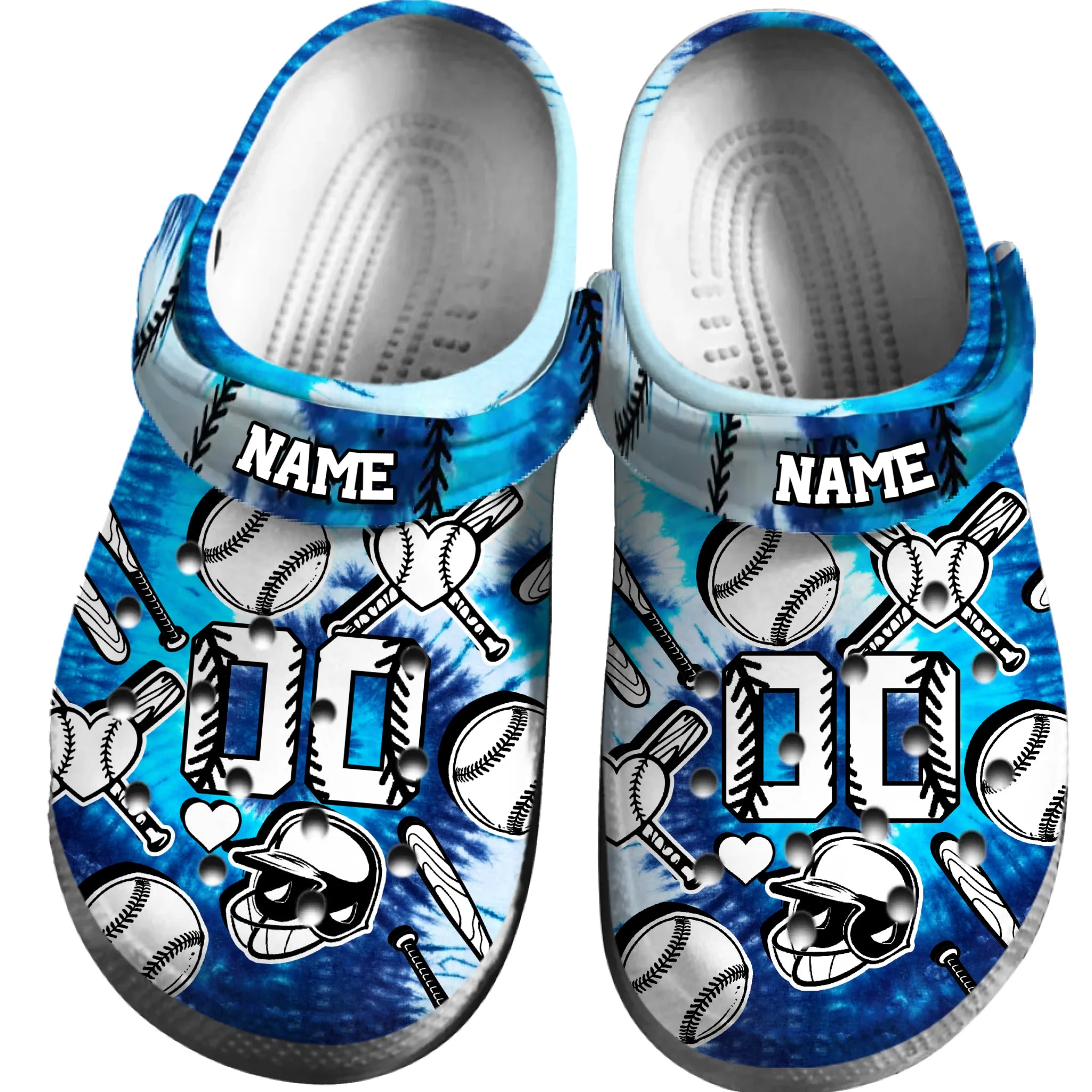 Merchidea Blue Tie-Dye Baseball Sport Crocs Crocband Clogs Shoes Comfortable For Men Women and Kids
