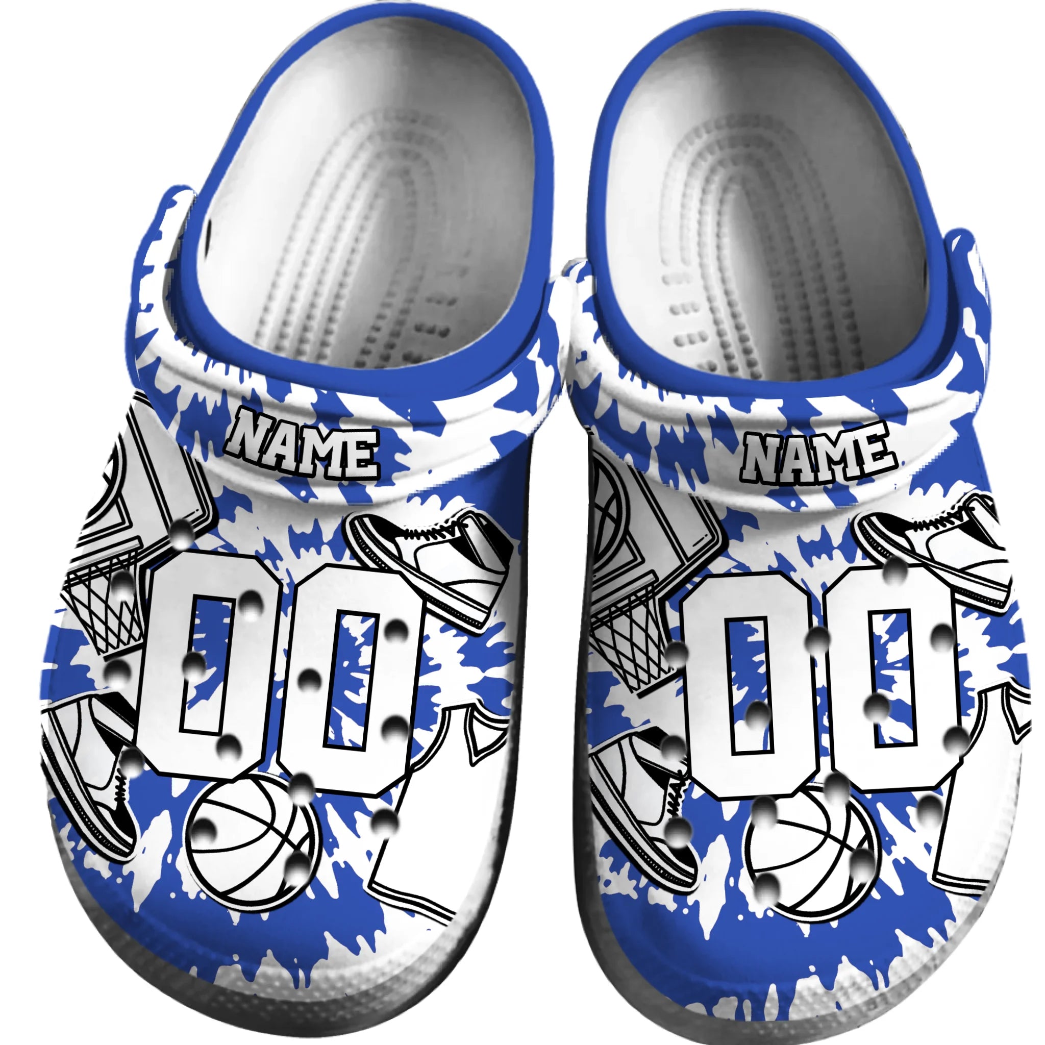 Merchidea Blue Tie-Dye Basketball Sport Crocs Crocband Clogs Shoes Comfortable For Men Women and Kids