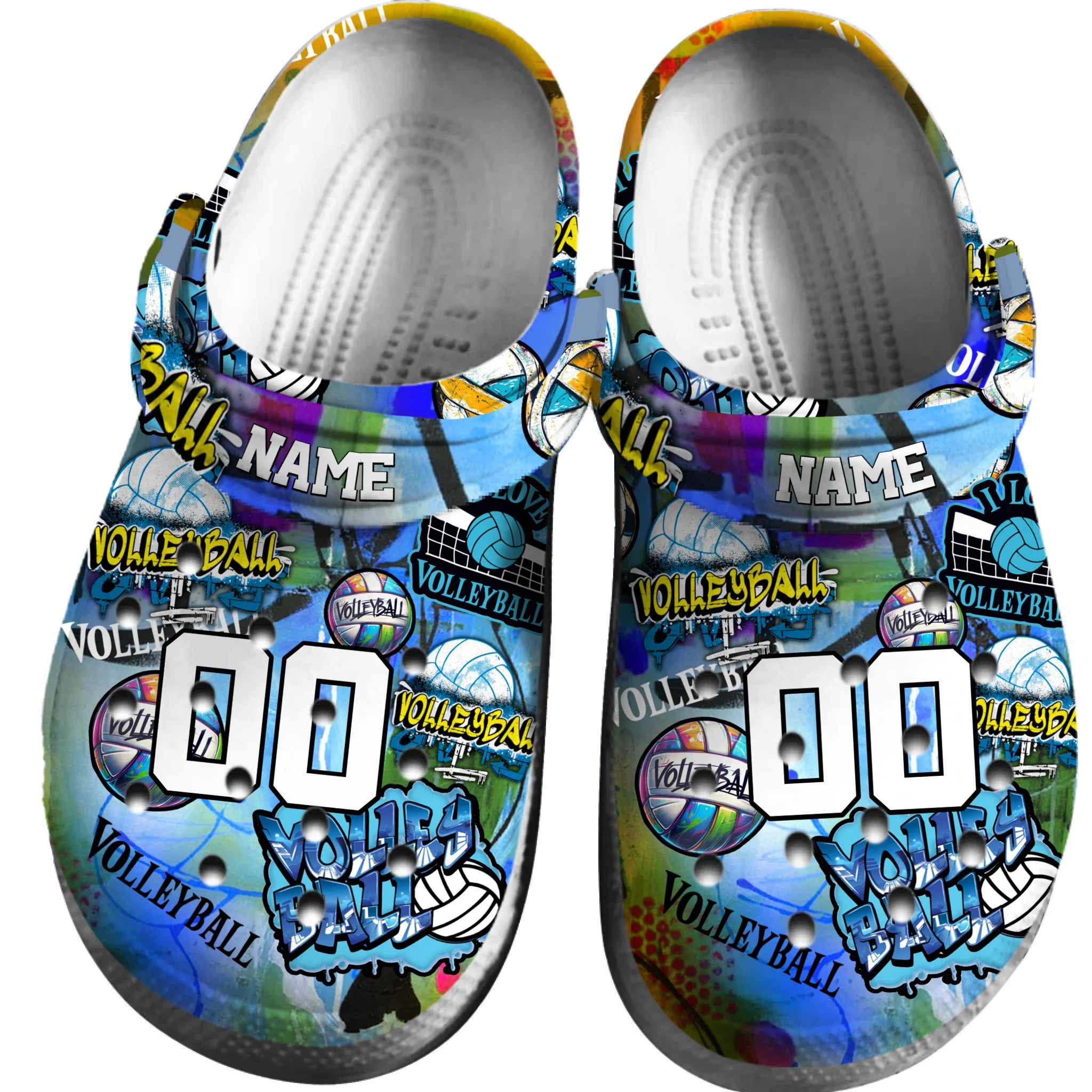 Merchidea Blue Yellow Graffiti Volleyball Sport Crocs Crocband Clogs Shoes Comfortable For Men Women and Kids