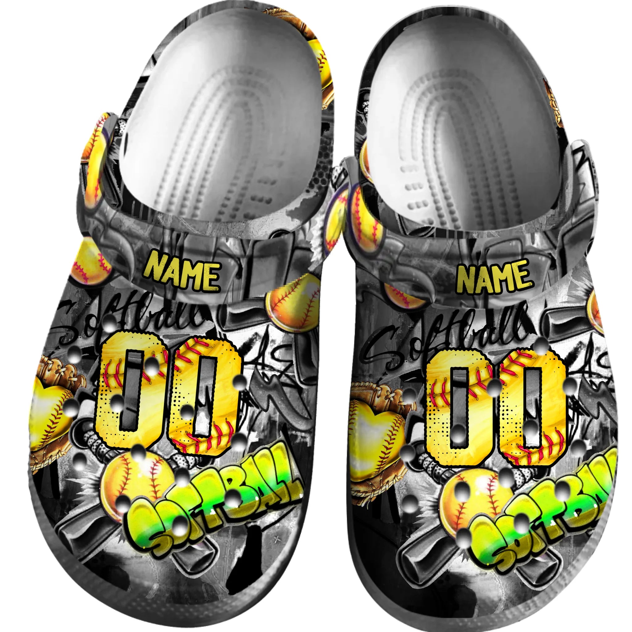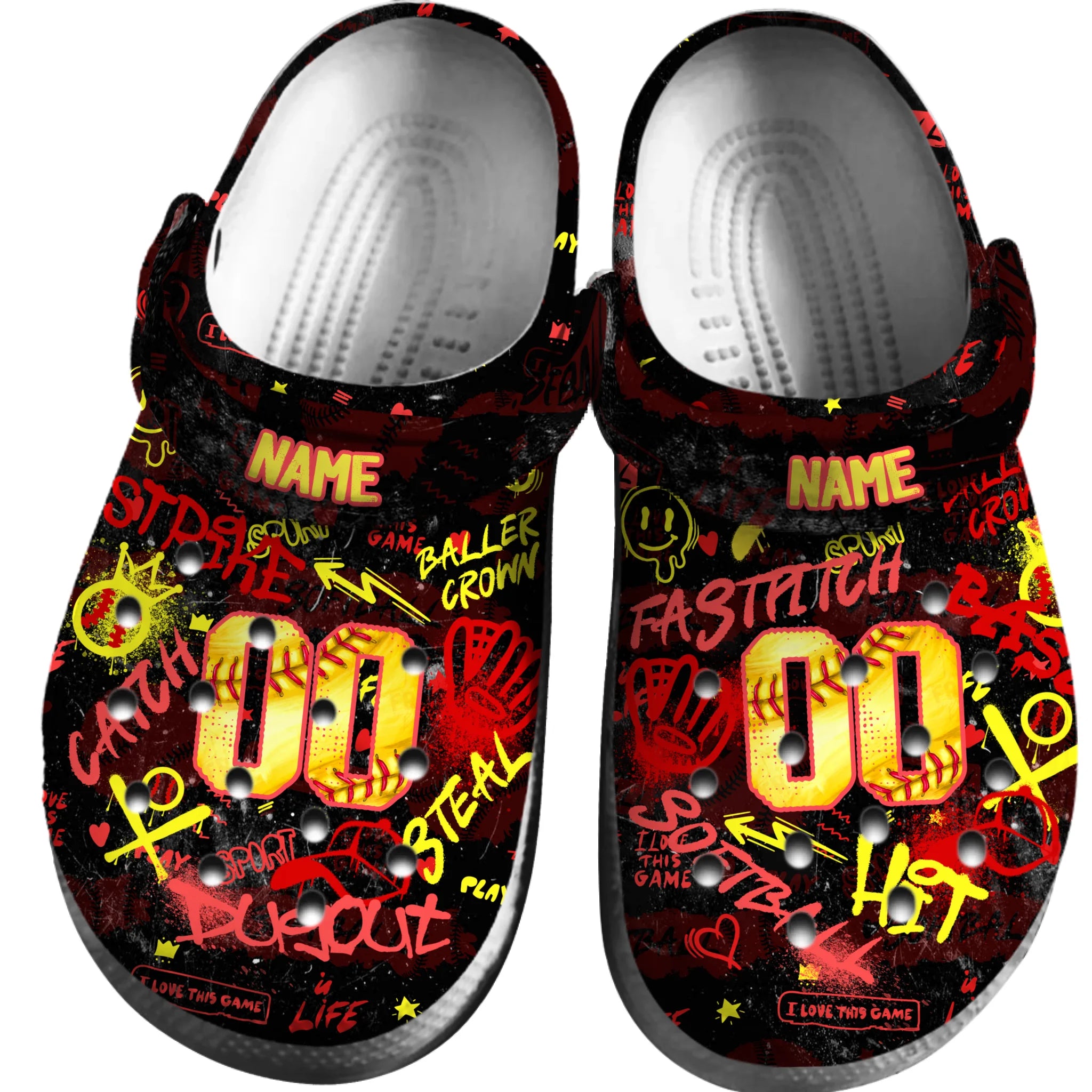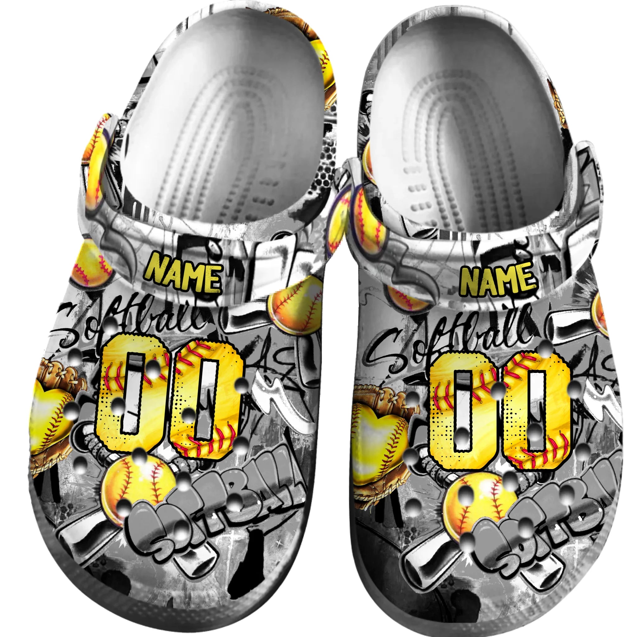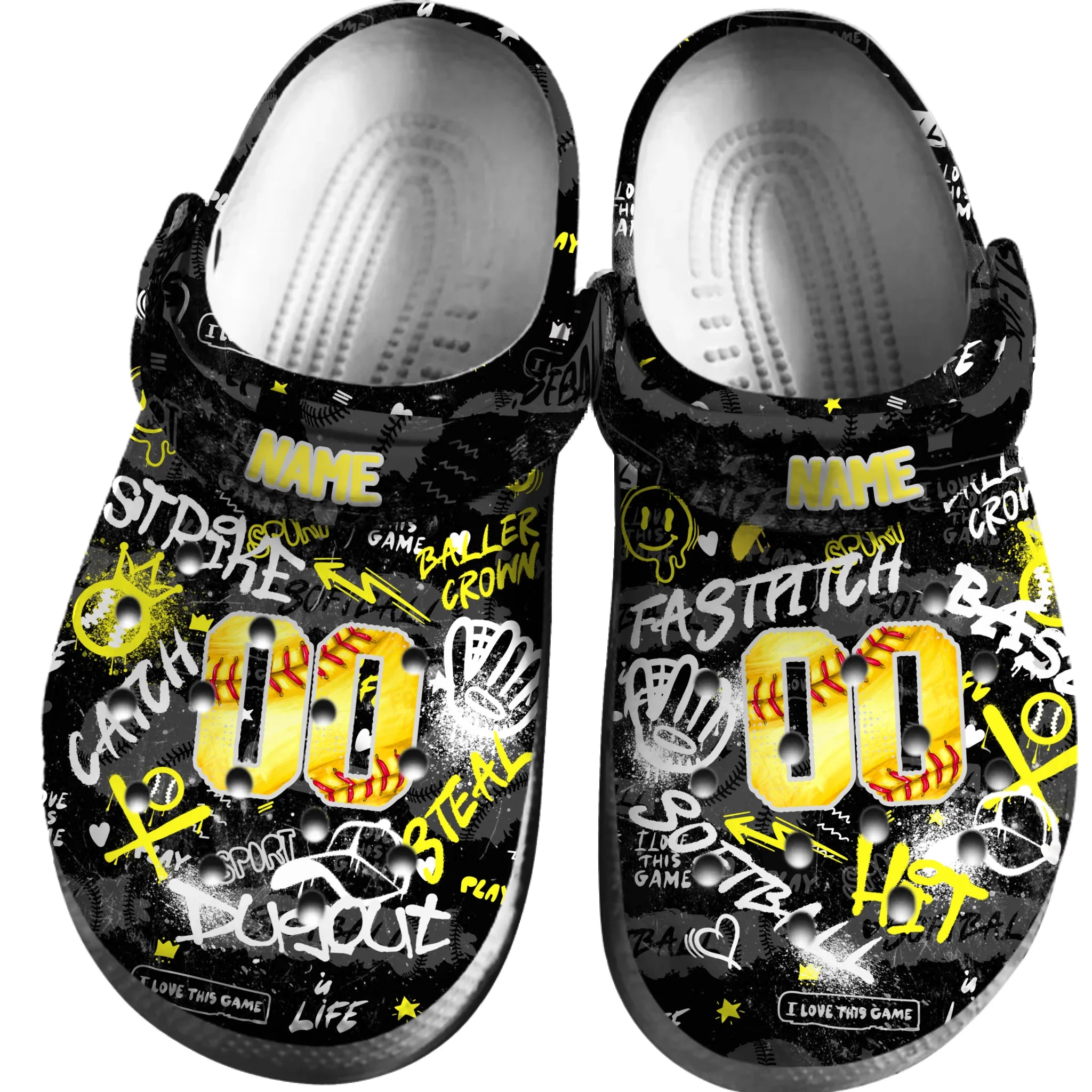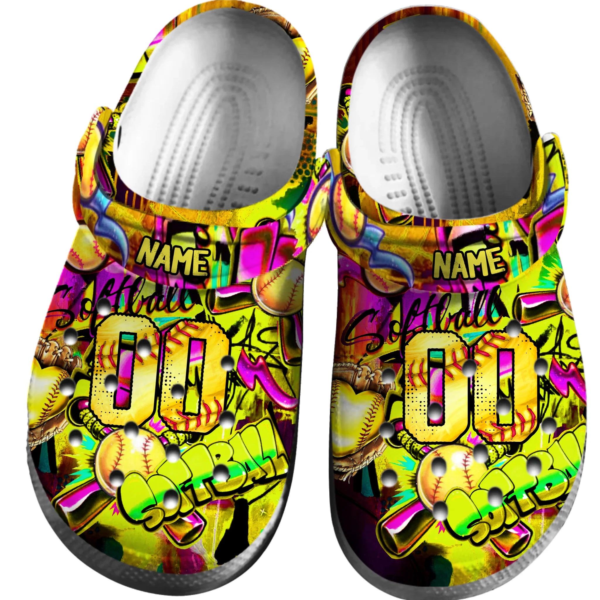Merchidea Yellow Graffiti Softball Sport Crocs Crocband Clogs Shoes Comfortable For Men Women and Kids