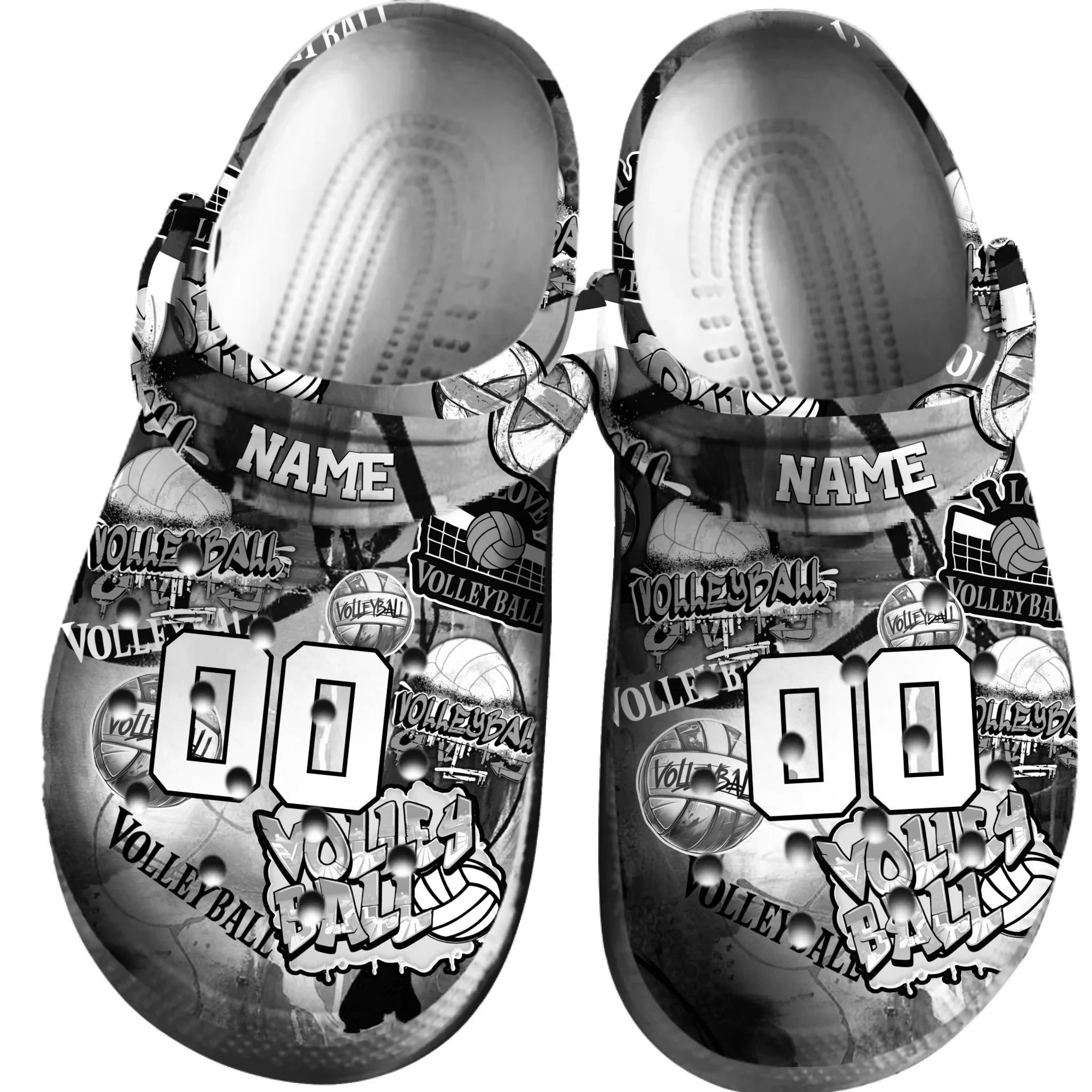 Merchidea Gray Graffiti Volleyball Sport Crocs Crocband Clogs Shoes Comfortable For Men Women and Kids