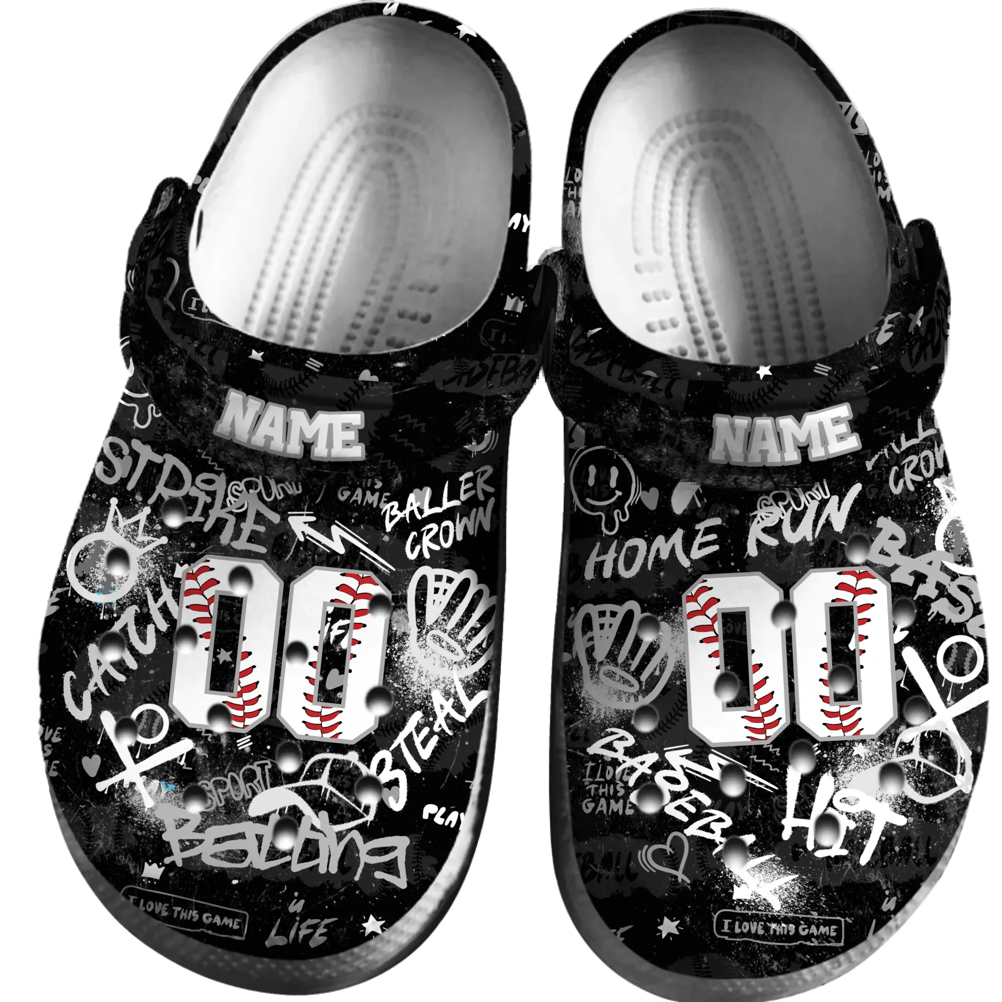 Merchidea Gray Graffiti Softball Sport Crocs Crocband Clogs Shoes Comfortable For Men Women and Kids