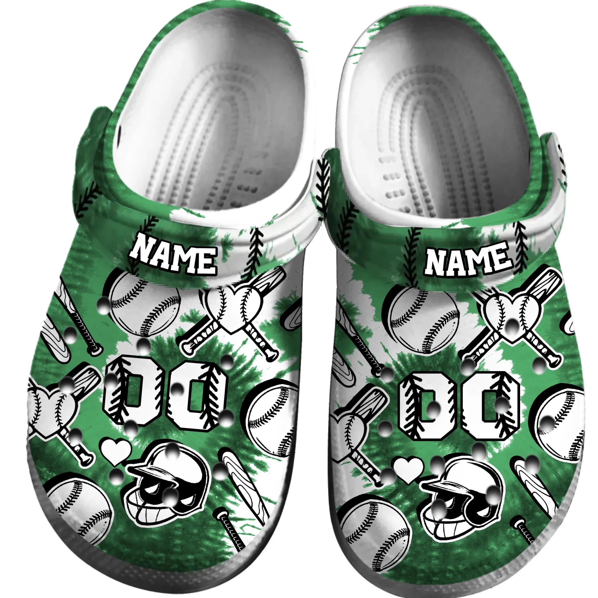 Merchidea Green Tie-Dye Baseball Sport Crocs Crocband Clogs Shoes Comfortable For Men Women and Kids