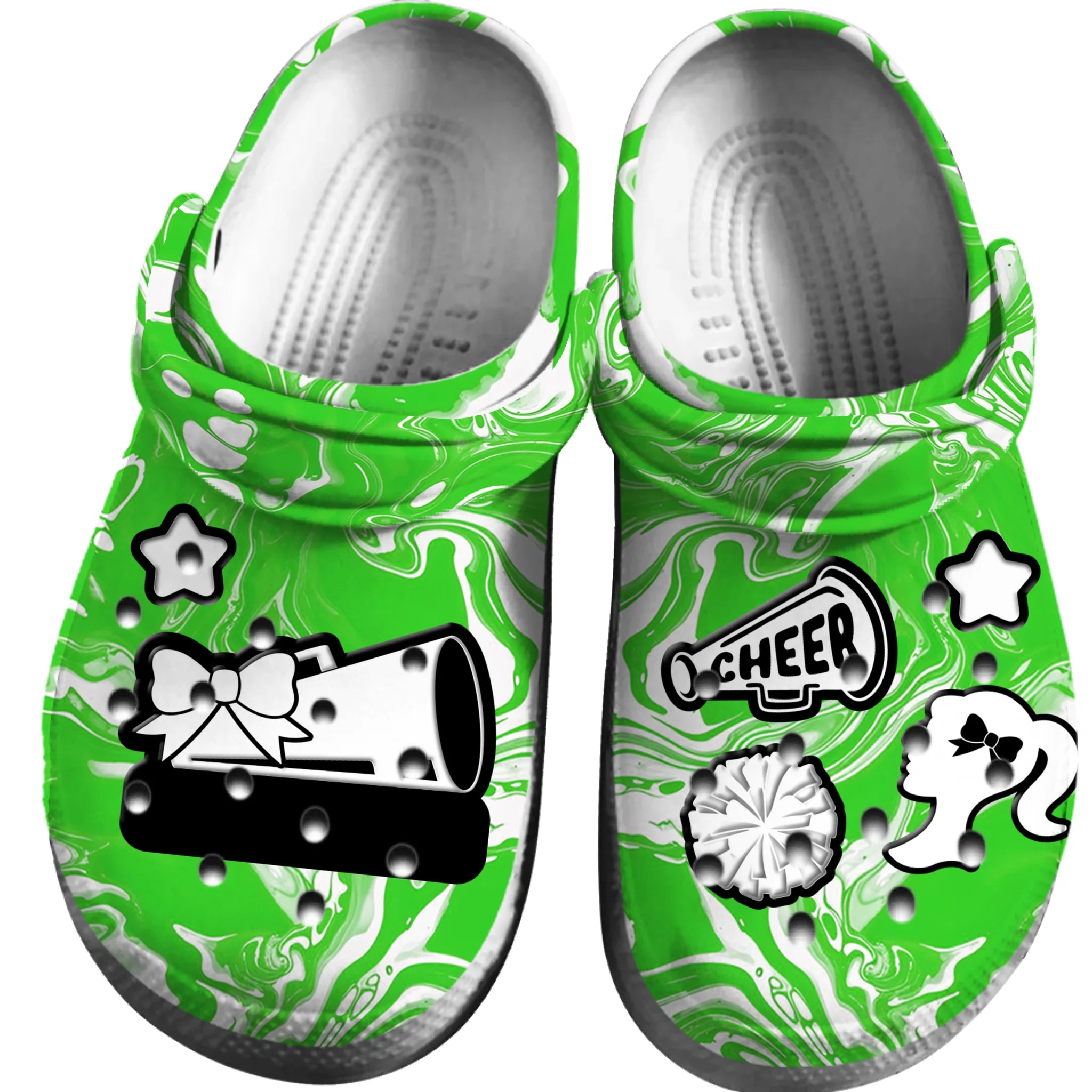 Merchidea Green Tie-Dye Cheerleading Sport Crocs Crocband Clogs Shoes Comfortable For Men Women and Kids