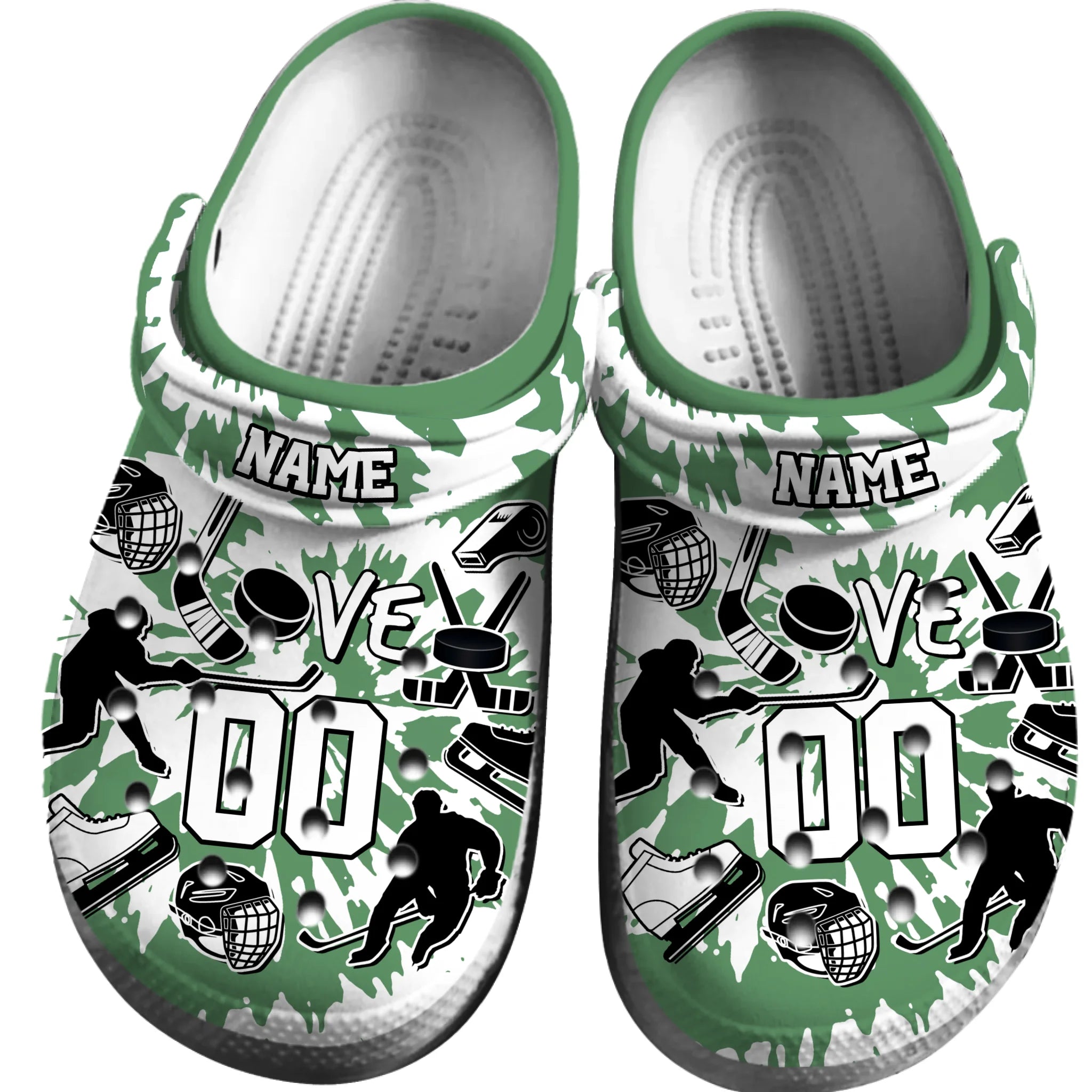 Merchidea Green Tie-Dye Ice Hockey Sport Crocs Crocband Clogs Shoes Comfortable For Men Women and Kids