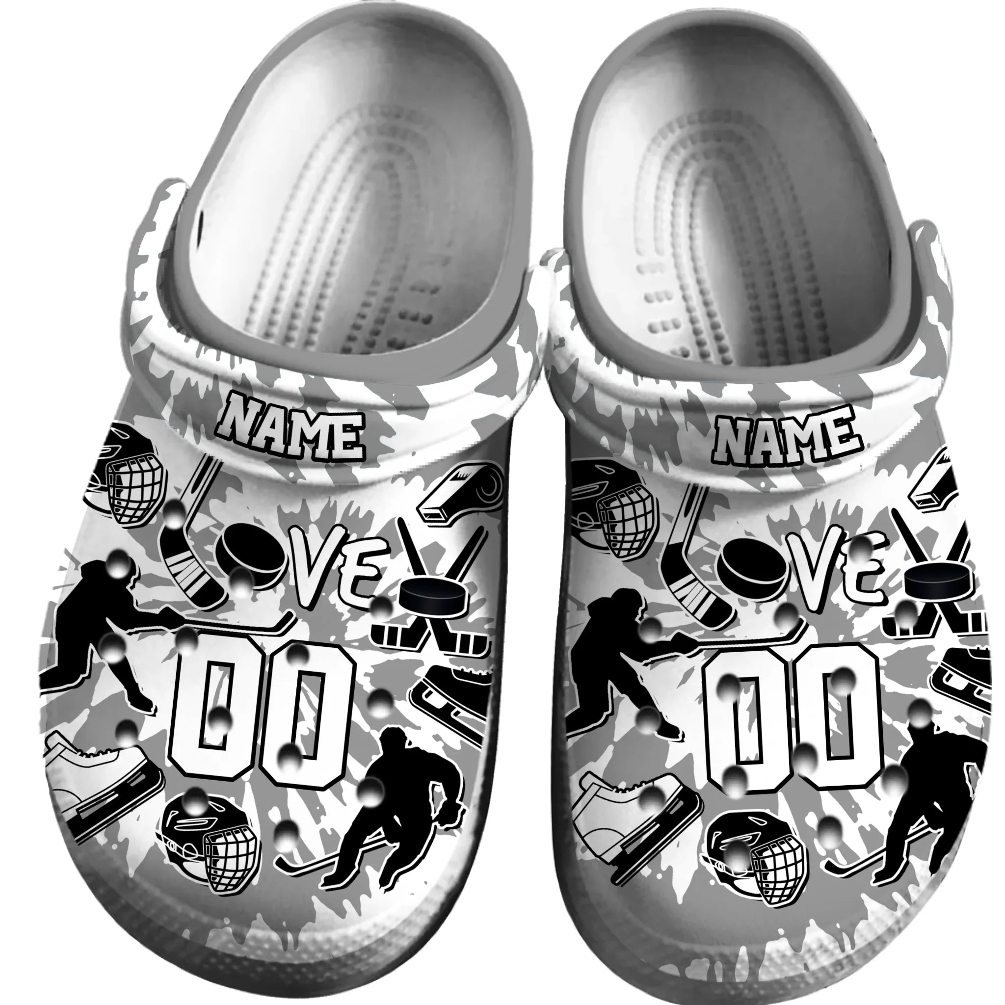 Merchidea Grey Tie-Dye Ice Hockey Sport Crocs Crocband Clogs Shoes Comfortable For Men Women and Kids