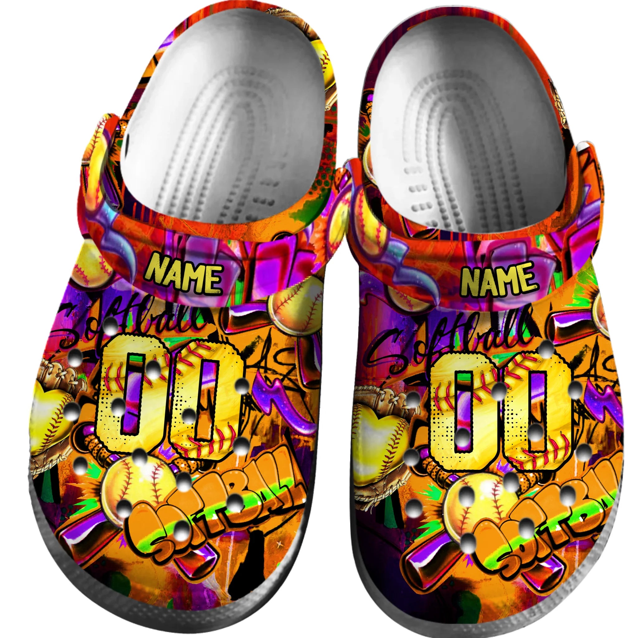 Merchidea Orange Graffiti Softball Sport Crocs Crocband Clogs Shoes Comfortable For Men Women and Kids