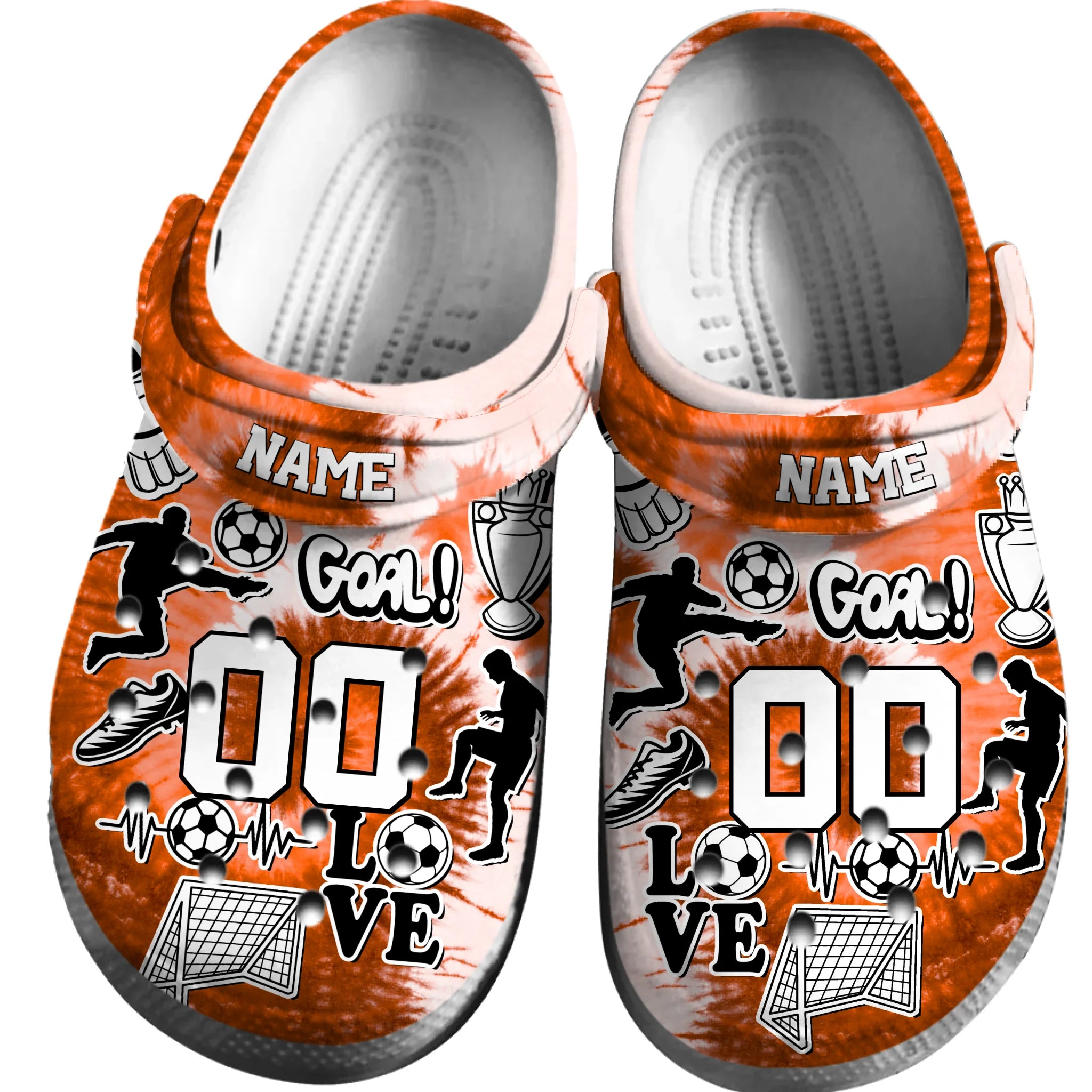 Merchidea Orange Tie-Dye Soccer Sport Crocs Crocband Clogs Shoes Comfortable For Men Women and Kids