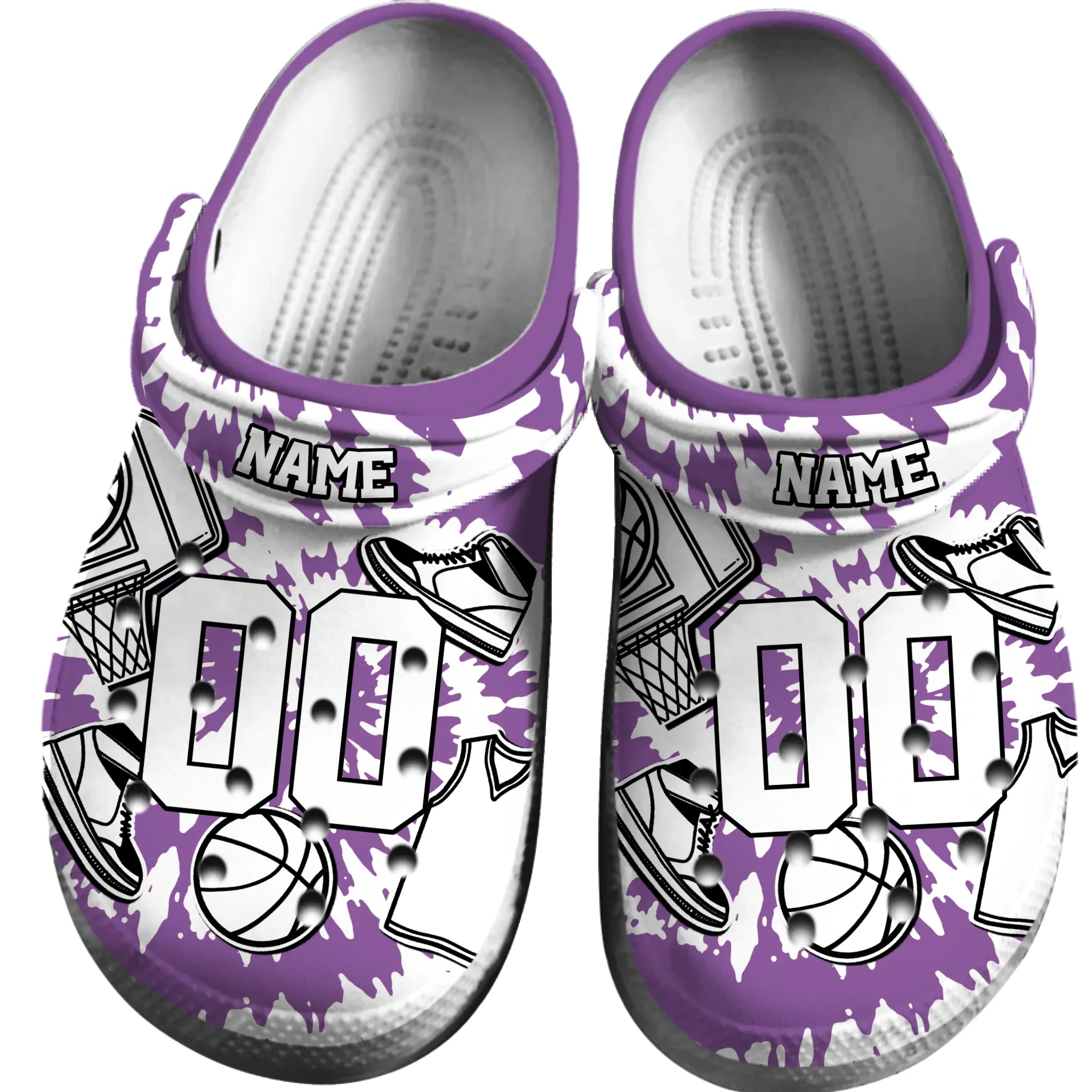 Merchidea Purple Tie-Dye Basketball Sport Crocs Crocband Clogs Shoes Comfortable For Men Women and Kids