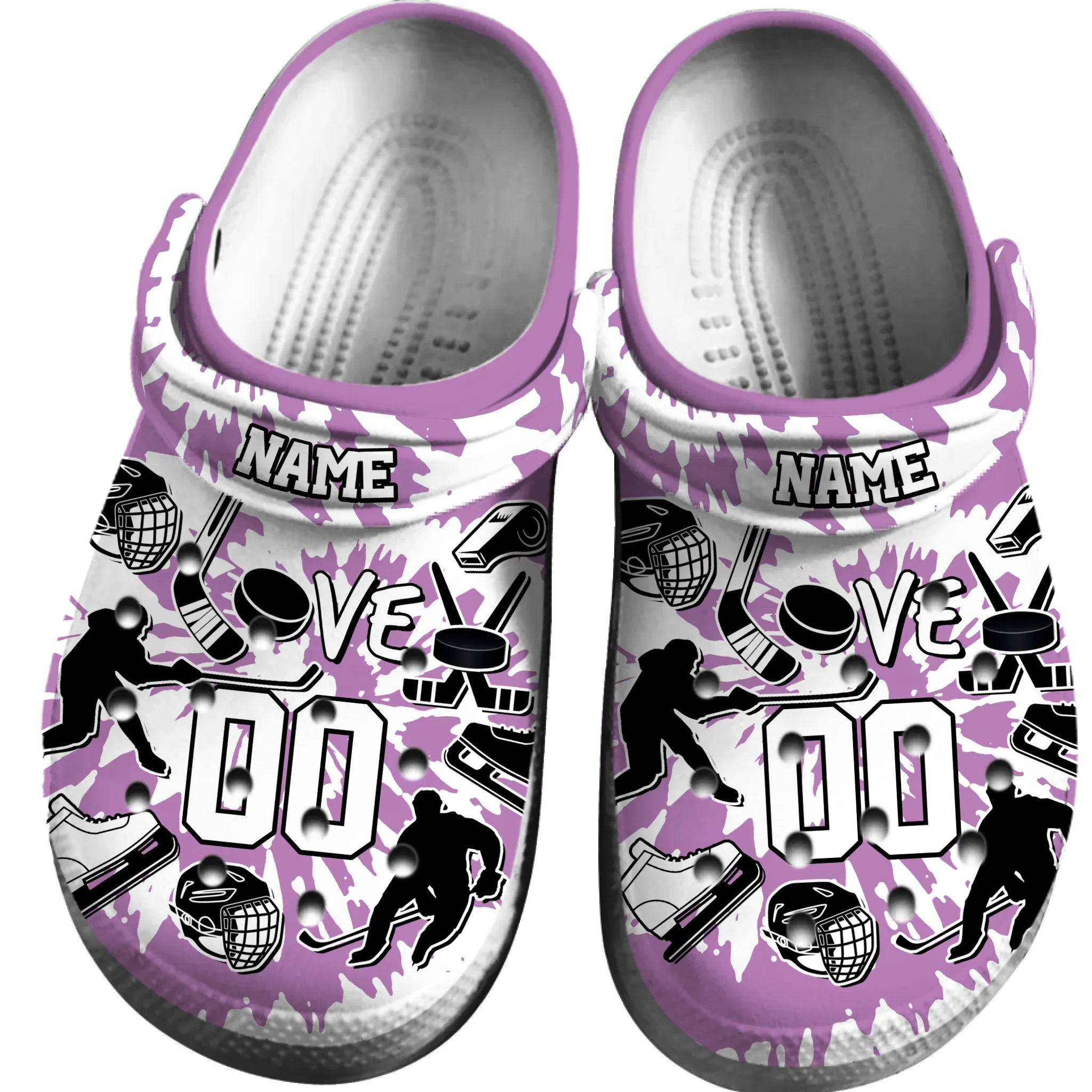 Merchidea Purple Tie-Dye Ice Hockey Sport Crocs Crocband Clogs Shoes Comfortable For Men Women and Kids