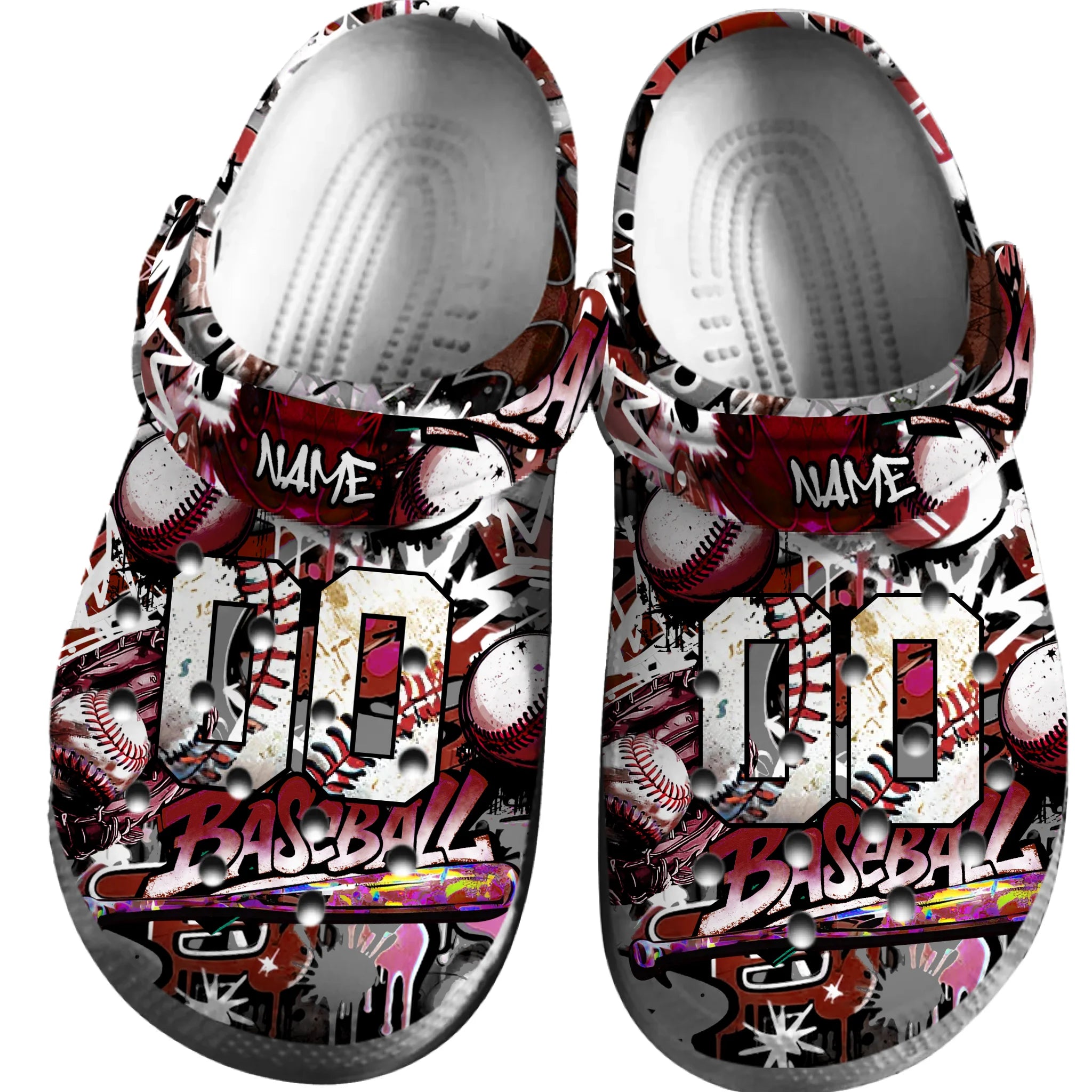 Merchidea Red Graffiti Baseball Sport Crocs Crocband Clogs Shoes Comfortable For Men Women and Kids