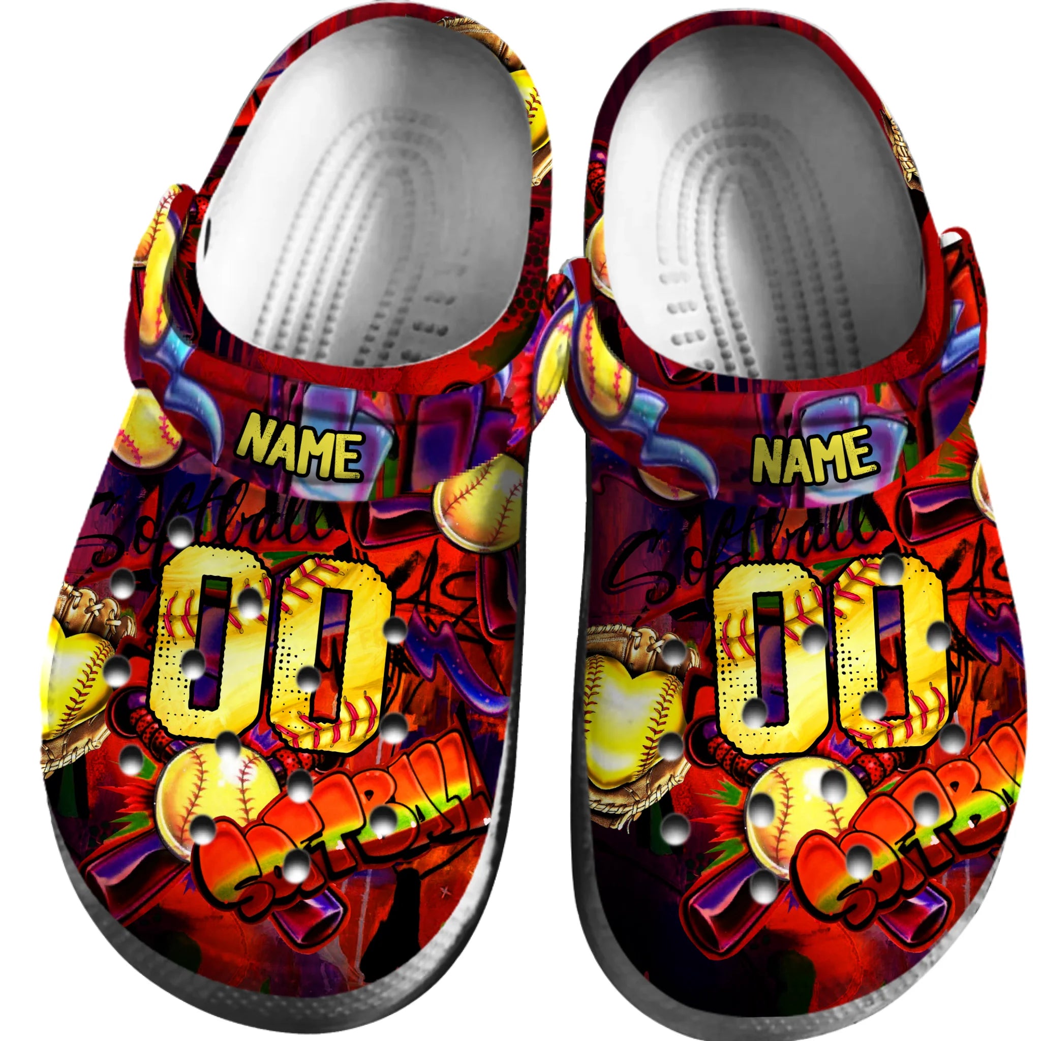 Merchidea Red Graffiti Softball Sport Crocs Crocband Clogs Shoes Comfortable For Men Women and Kids