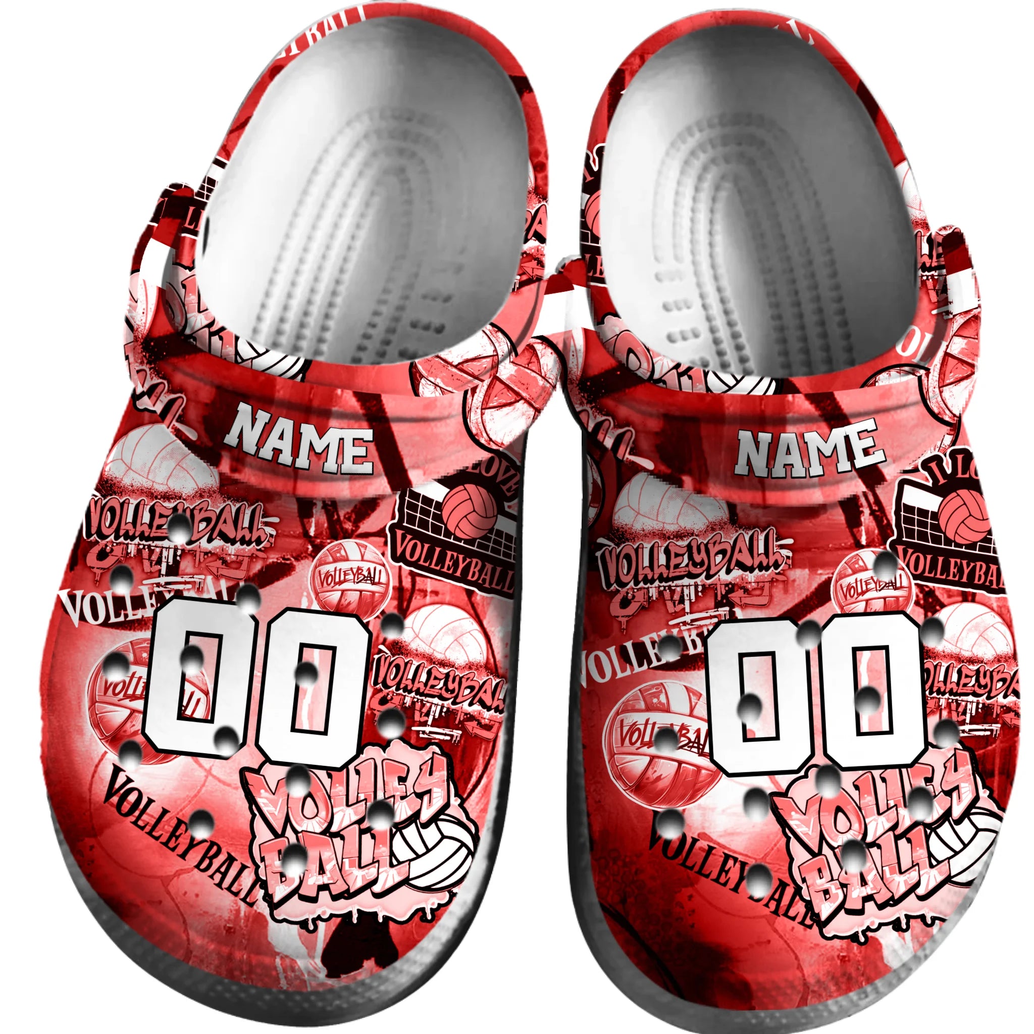 Merchidea Red Graffiti Volleyball Sport Crocs Crocband Clogs Shoes Comfortable For Men Women and Kids