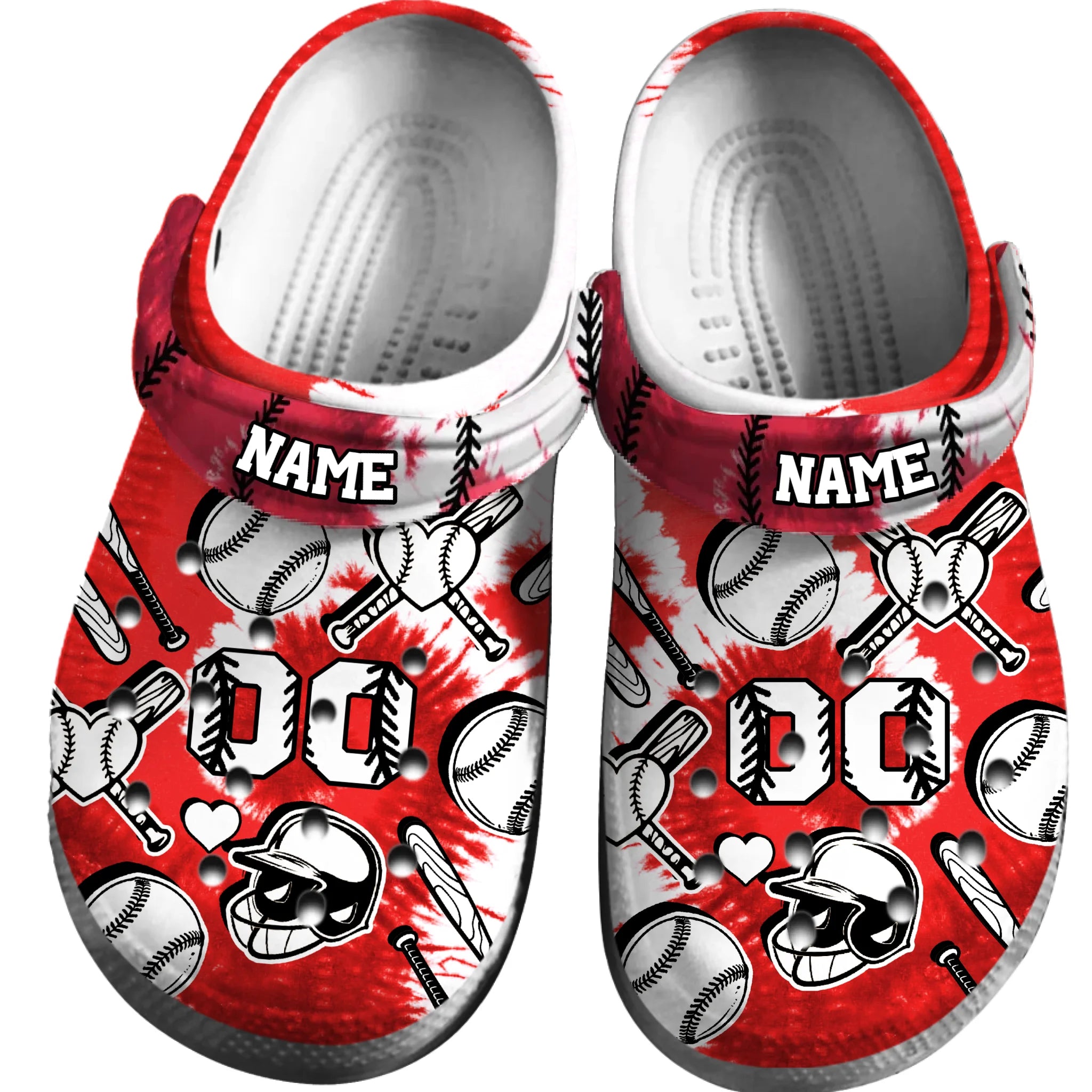 Merchidea Red Tie-Dye Baseball Sport Crocs Crocband Clogs Shoes Comfortable For Men Women and Kids