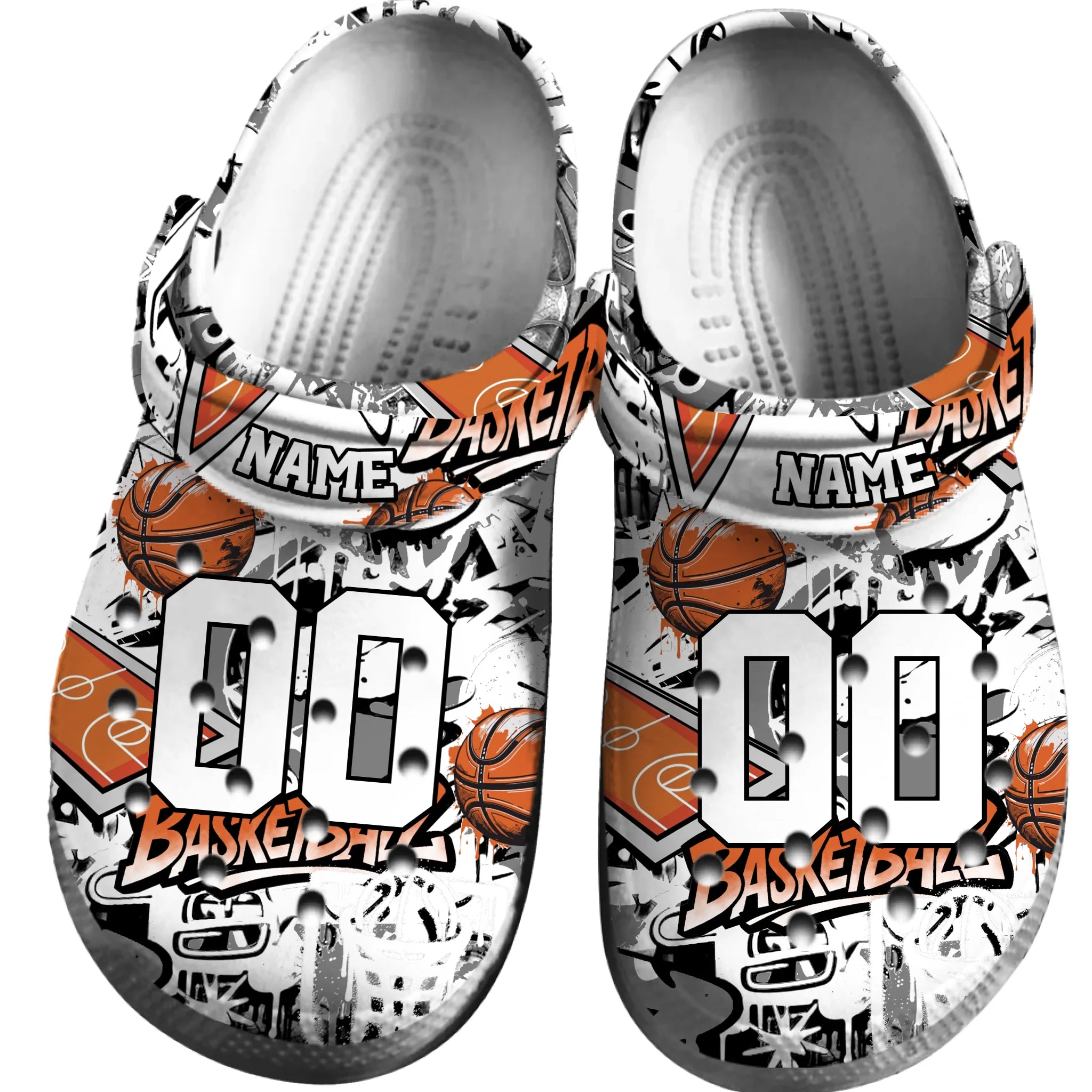 Merchidea White Graffiti Basketball Sport Crocs Crocband Clogs Shoes Comfortable For Men Women and Kids