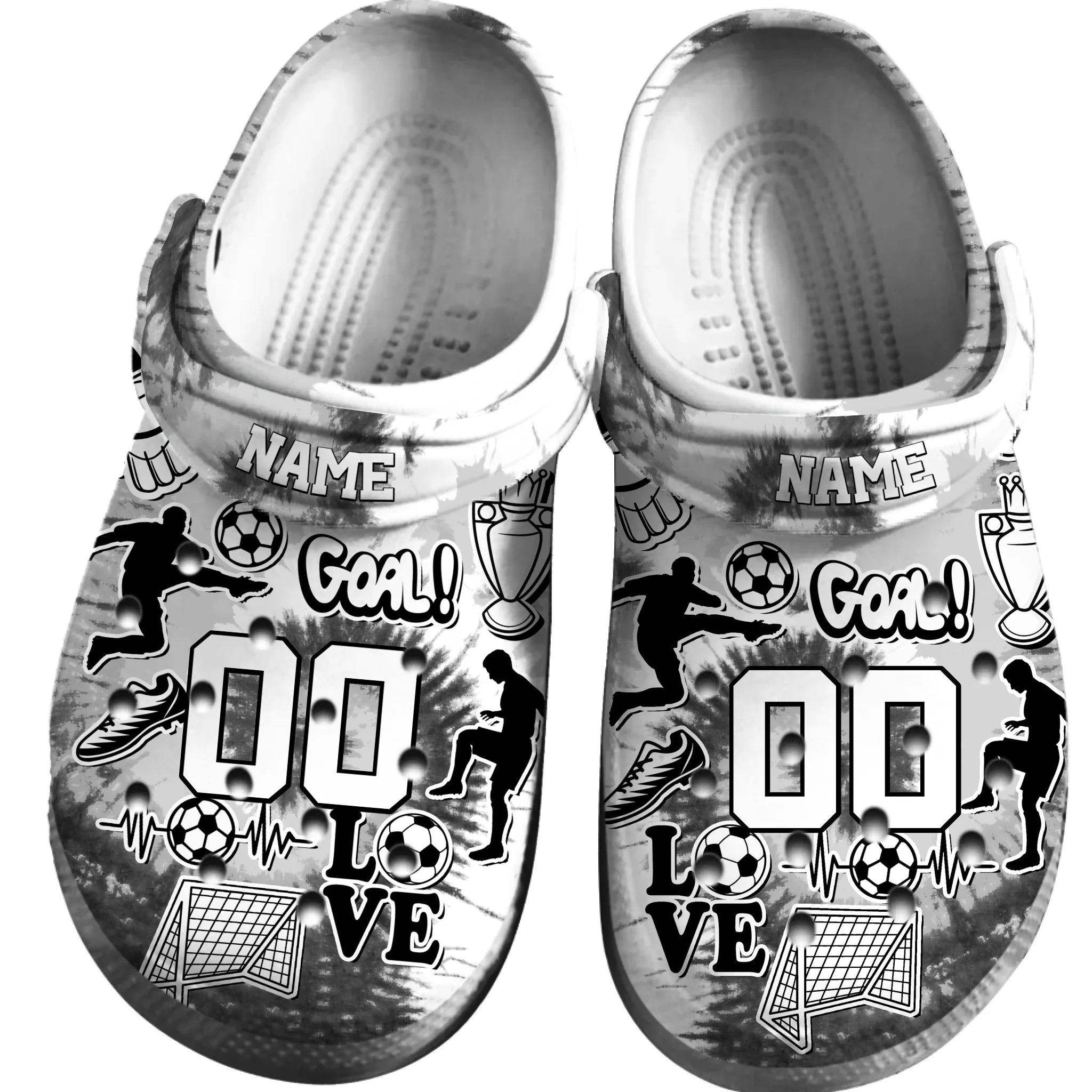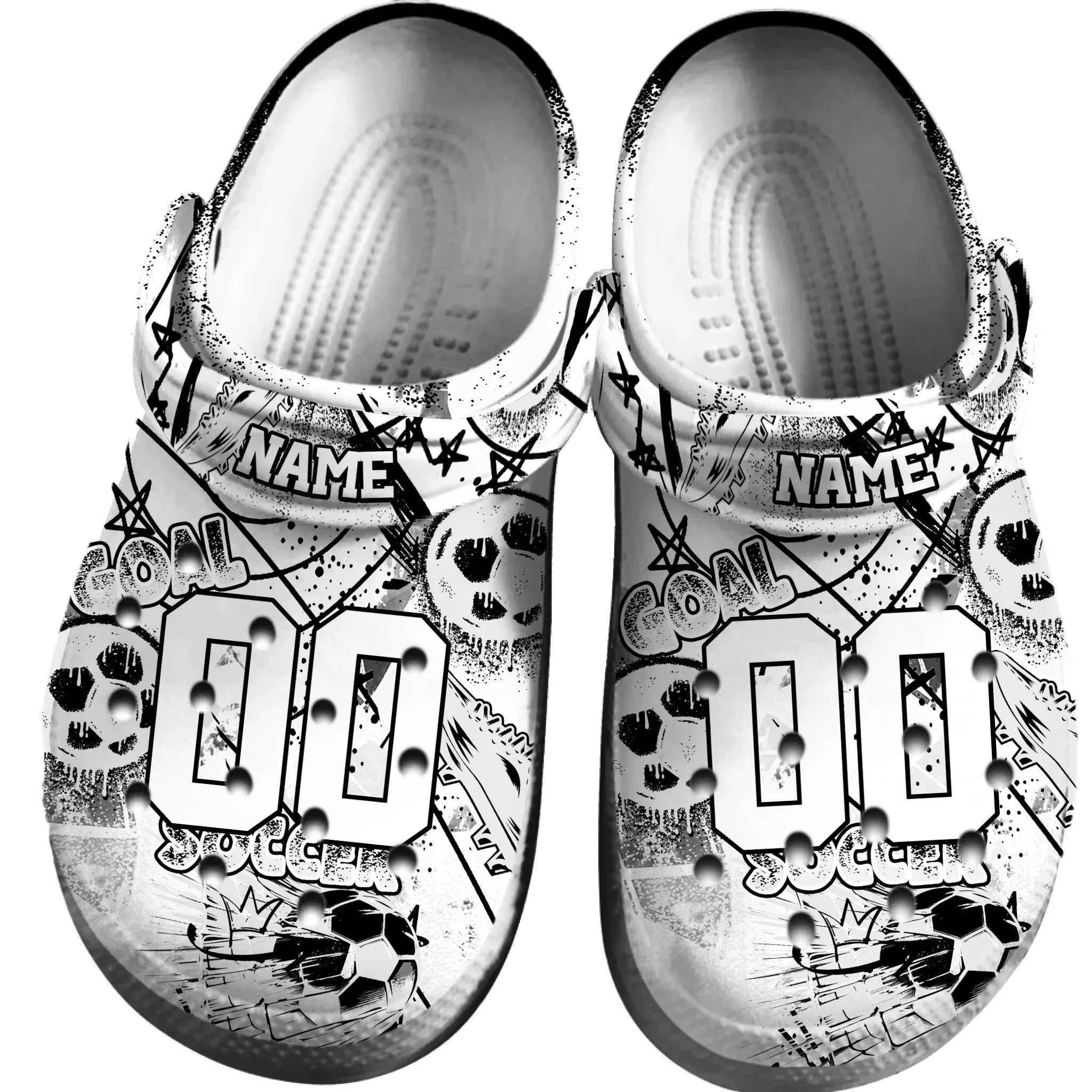 Merchidea White Graffiti Soccer Sport Crocs Crocband Clogs Shoes Comfortable For Men Women and Kids