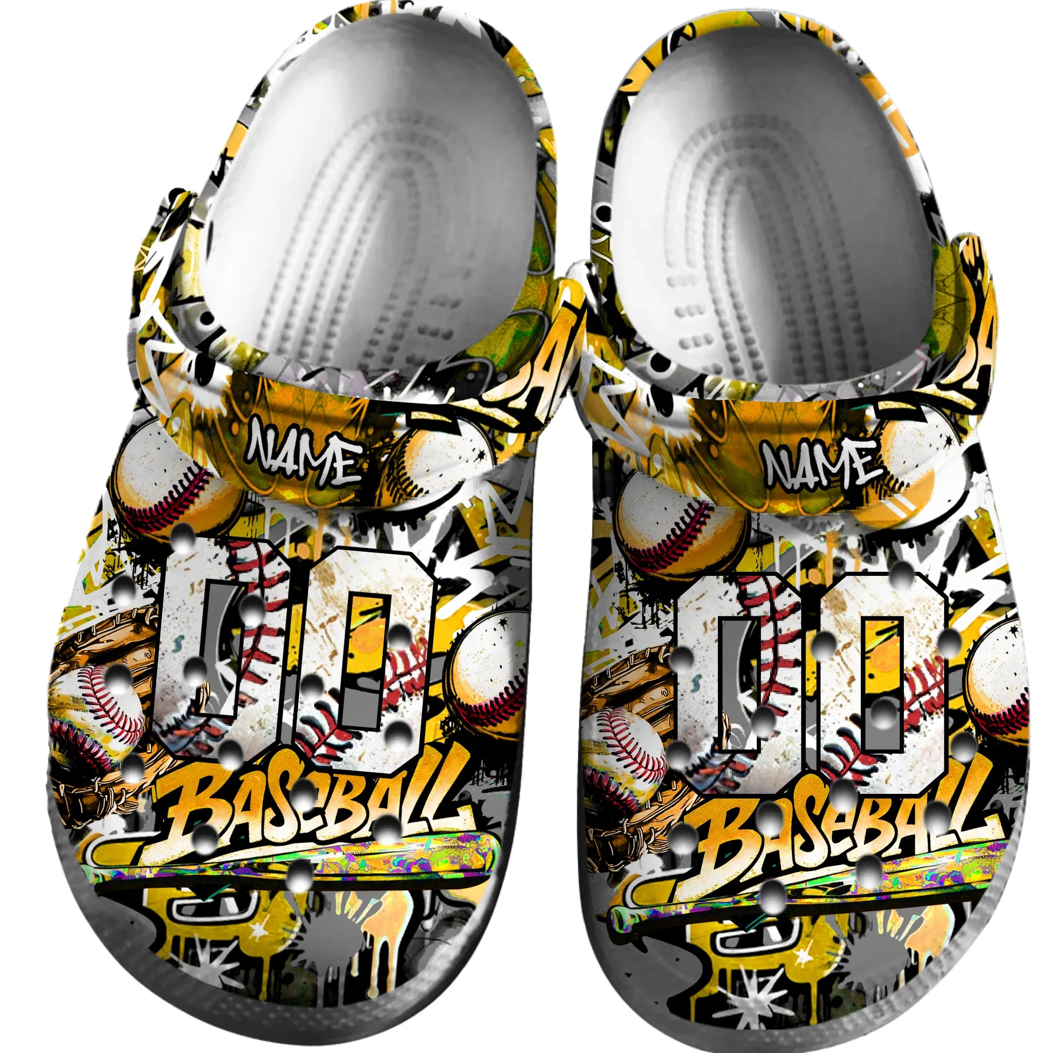 Merchidea Yellow Graffiti Baseball Sport Crocs Crocband Clogs Shoes Comfortable For Men Women and Kids