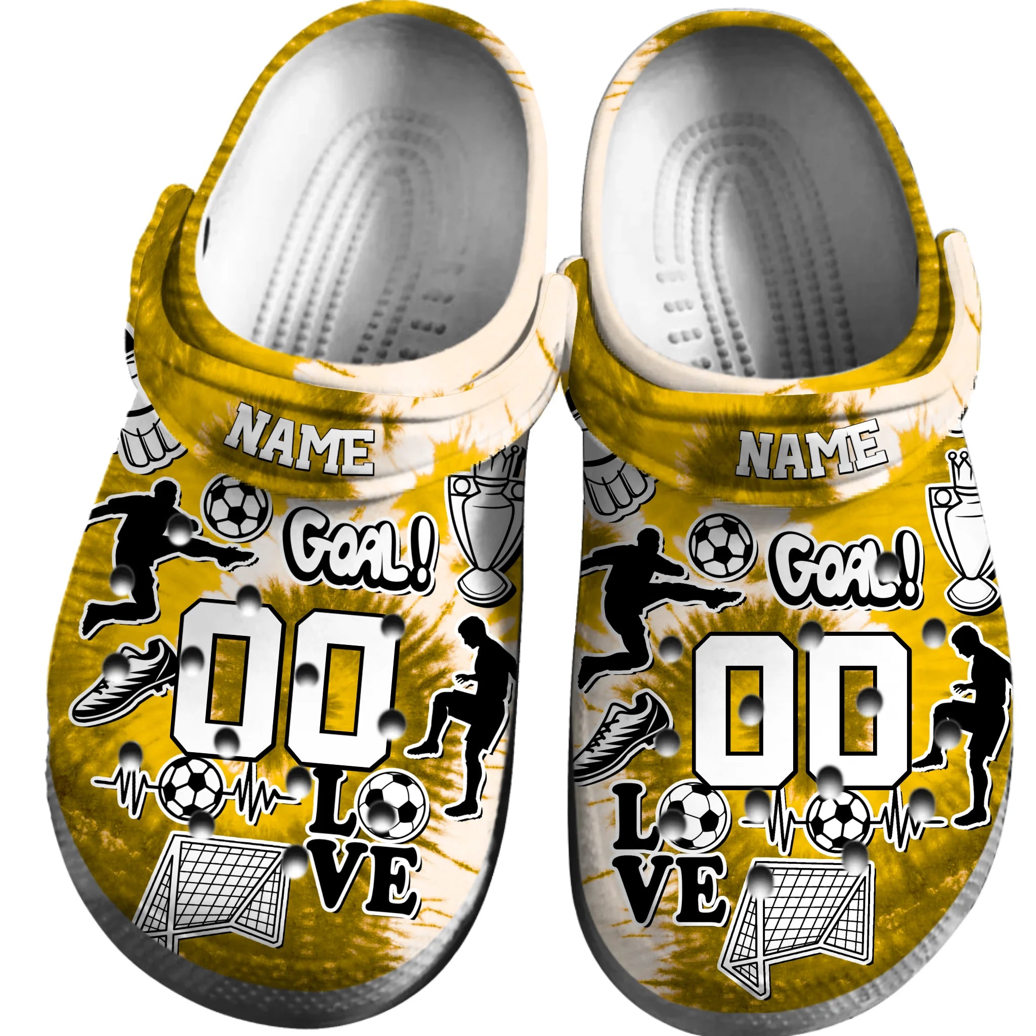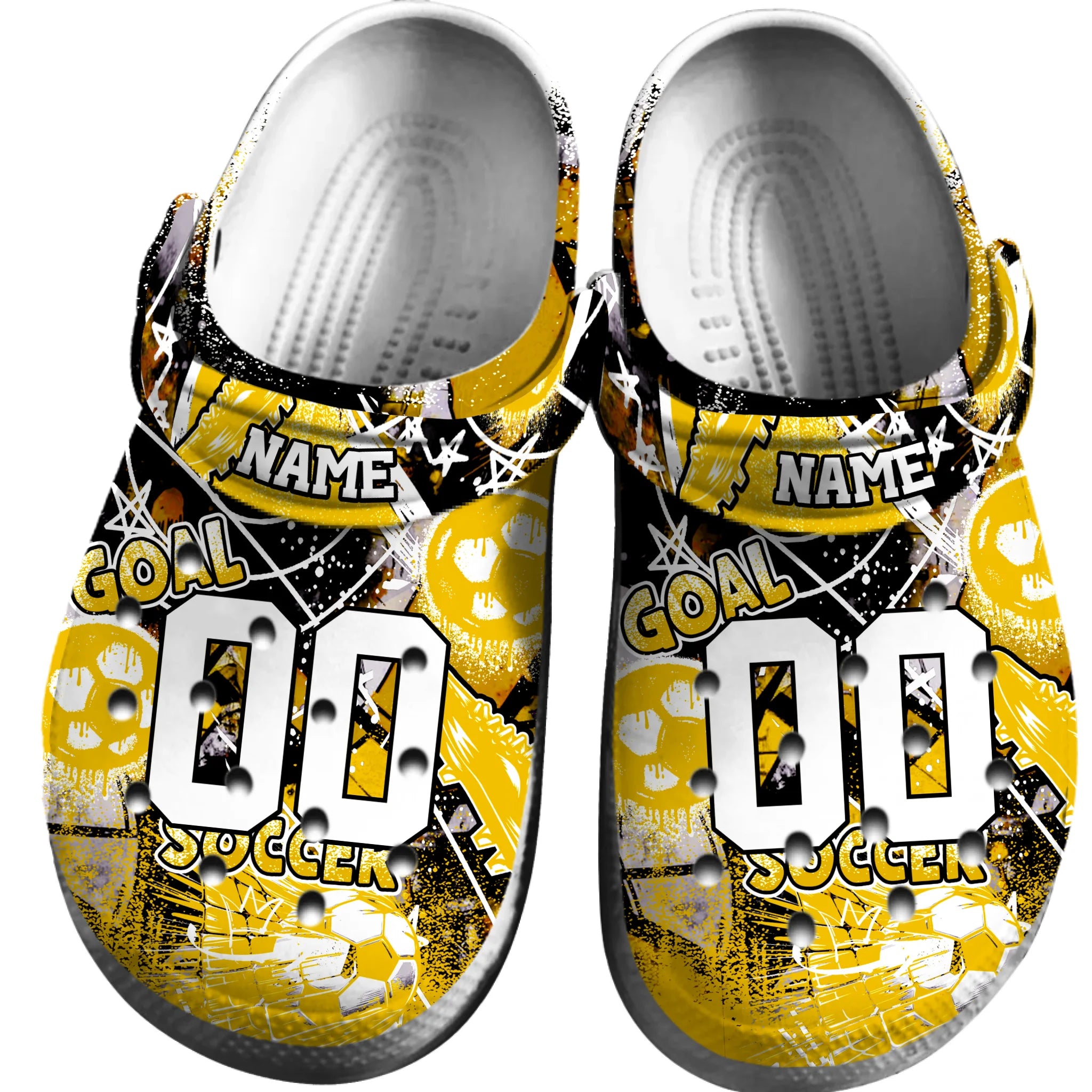 Merchidea Yellow Graffiti Soccer Sport Crocs Crocband Clogs Shoes Comfortable For Men Women and Kids