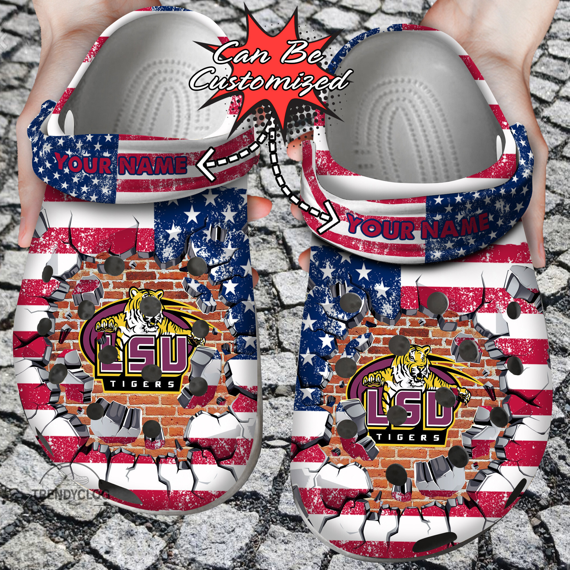 Merchidea Sport Personalized LSUTigers University American Flag New Clog Shoes