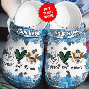 Merchidea Custom Name Peace Love My Hero Hot Us Army Rubber clog Shoes Comfy Footwear