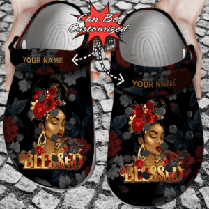 Merchidea Personalized Black Woman Just Blessed Clog Shoes