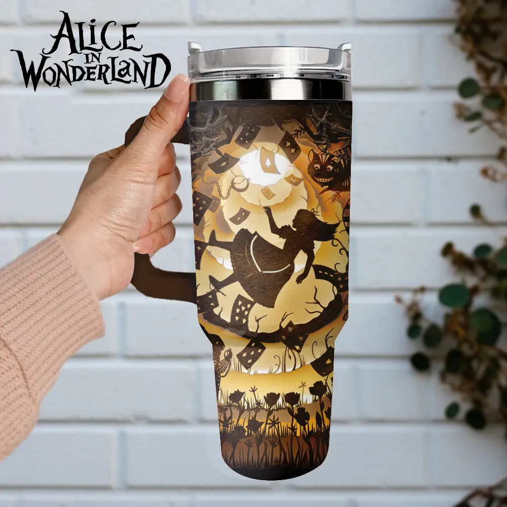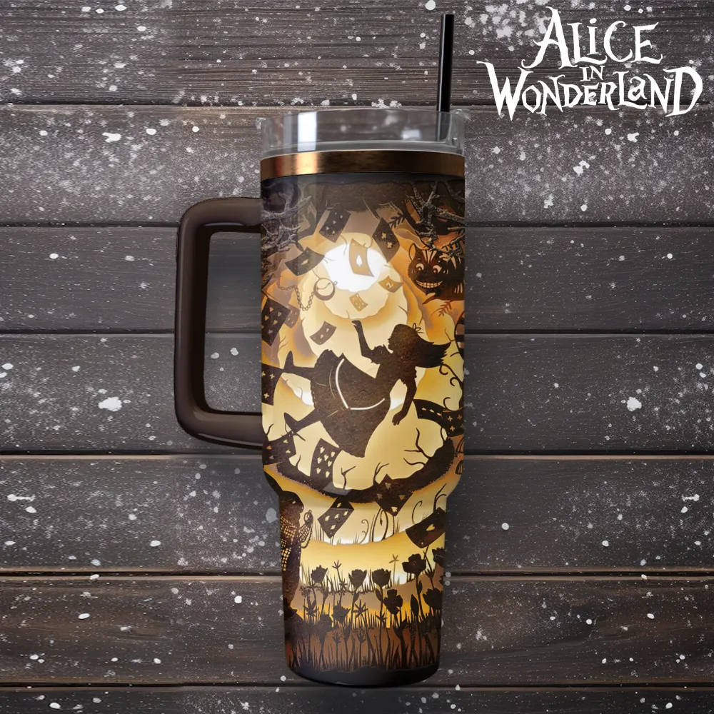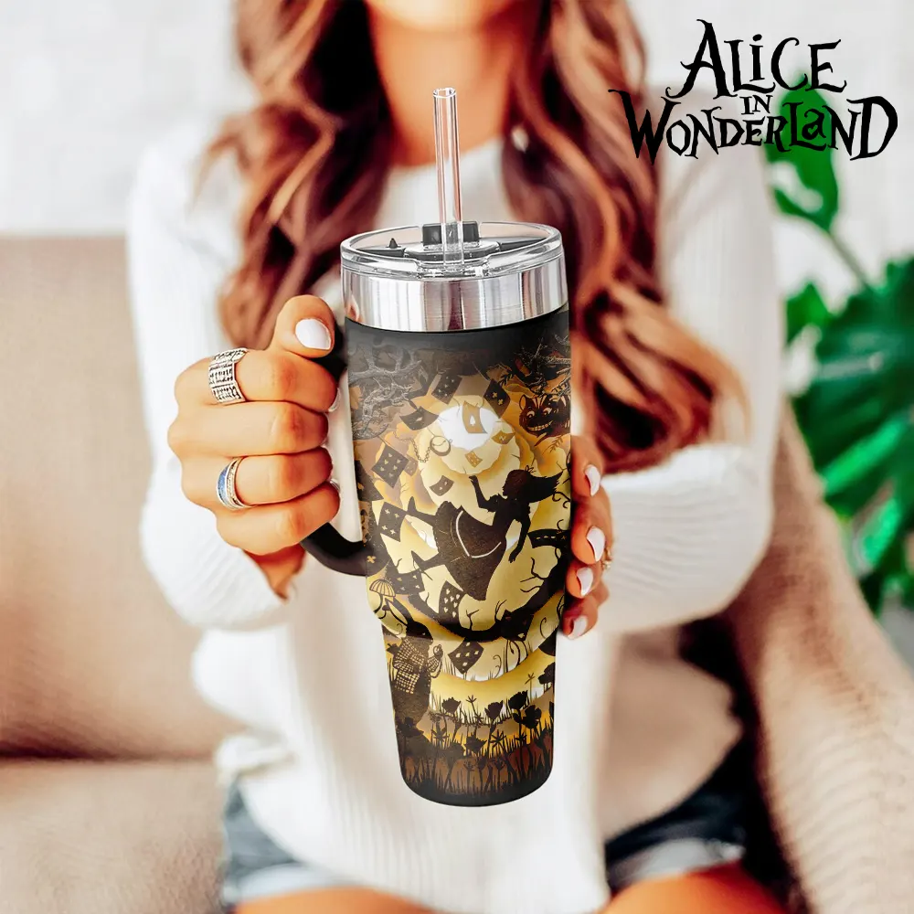 Alice in Wonderland Cartoon Custom Stanley Quencher 40oz Stainless Steel Tumbler With Handle