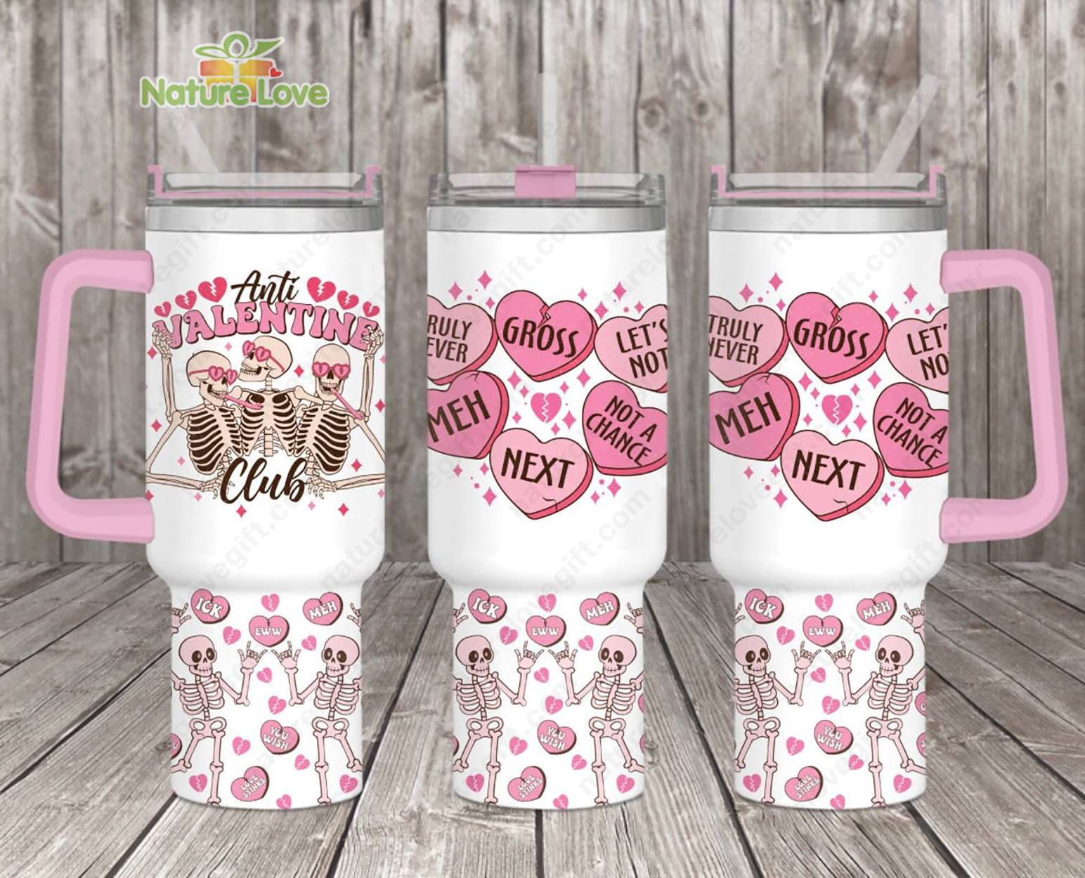 Anti Valentine Club Skull Custom Stanley Quencher 40oz Stainless Steel Tumbler With Handle