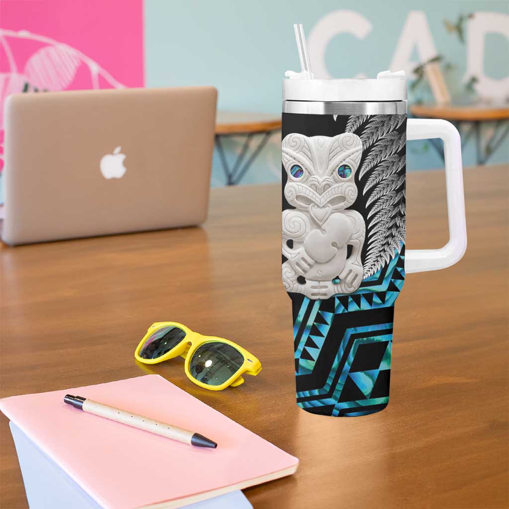 Aotearoa Taniko Paua Shell With Hei Tiki Custom Stanley Quencher 40oz Stainless Steel Tumbler With Handle
