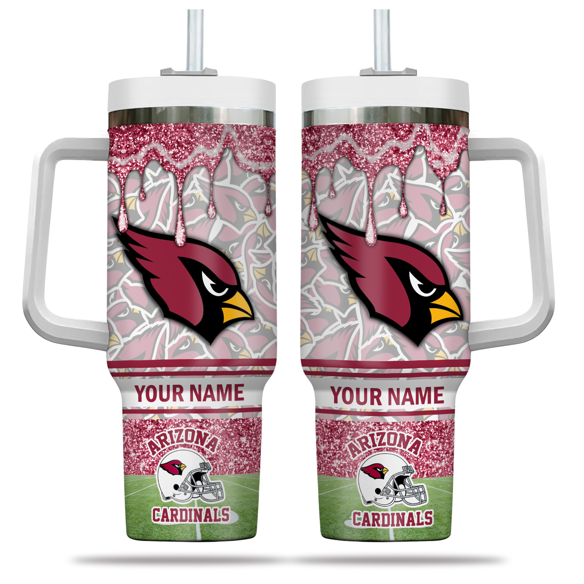 Arizona Cardinals NFL Glitter Custom Stanley Quencher 40oz Stainless Steel Tumbler With Handle