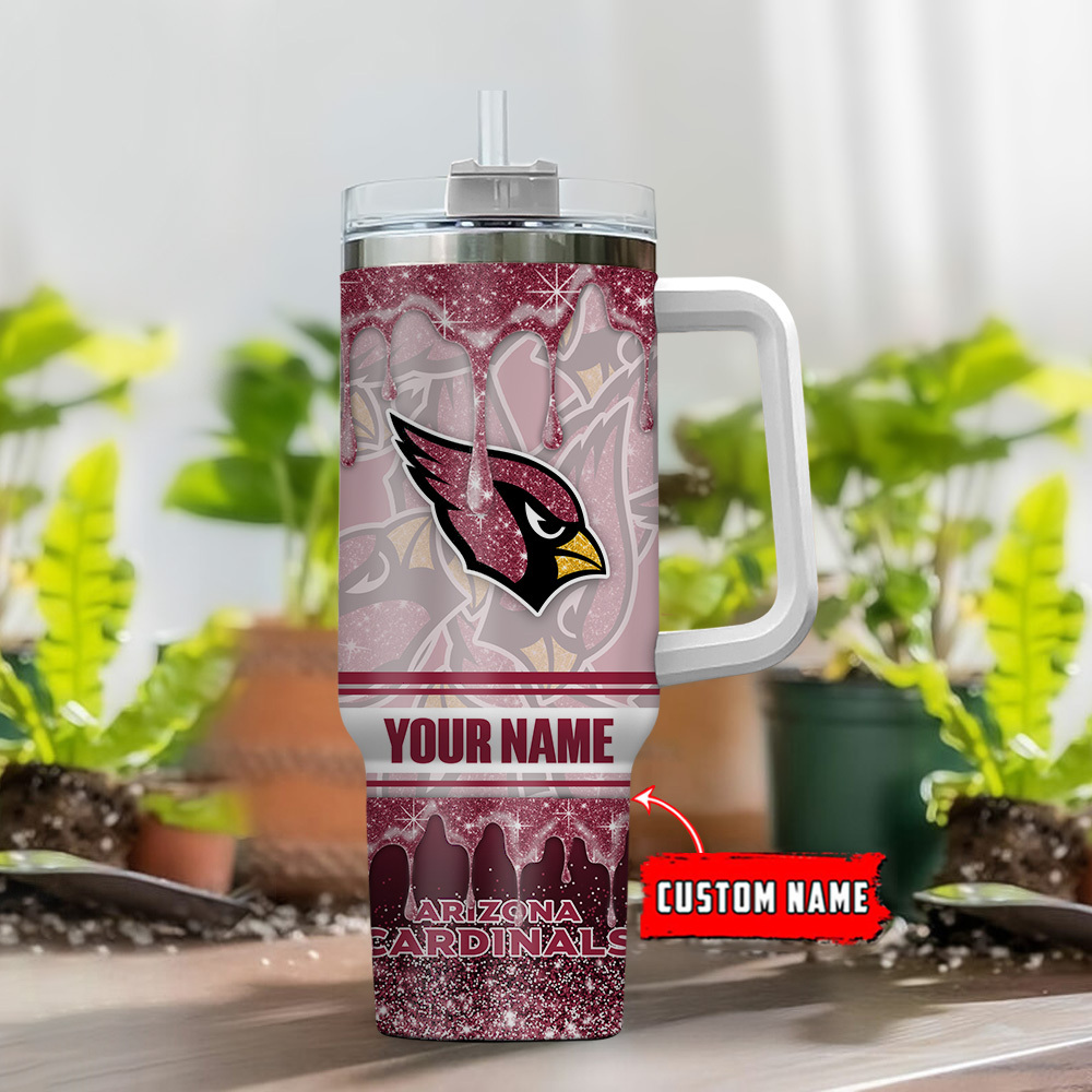 Arizona Cardinals NFL Glitter Custom Stanley Quencher 40oz Stainless Steel Tumbler With Handle