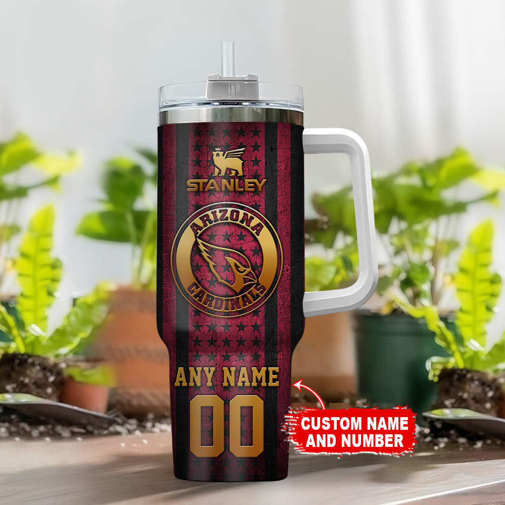 Arizona Cardinals NFL Golden Logos US Flag Custom Stanley Quencher 40oz Stainless Steel Tumbler With Handle
