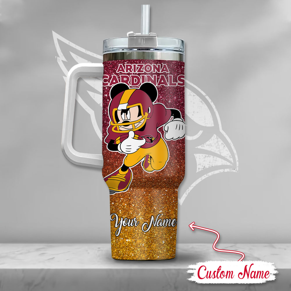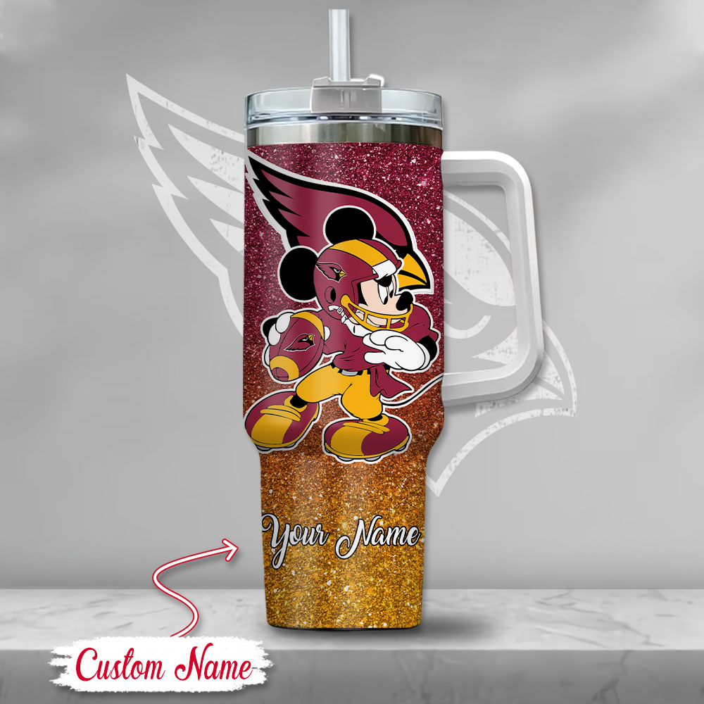 Arizona Cardinals NFL Mickey Mouse Glitter Custom Stanley Quencher 40oz Stainless Steel Tumbler With Handle