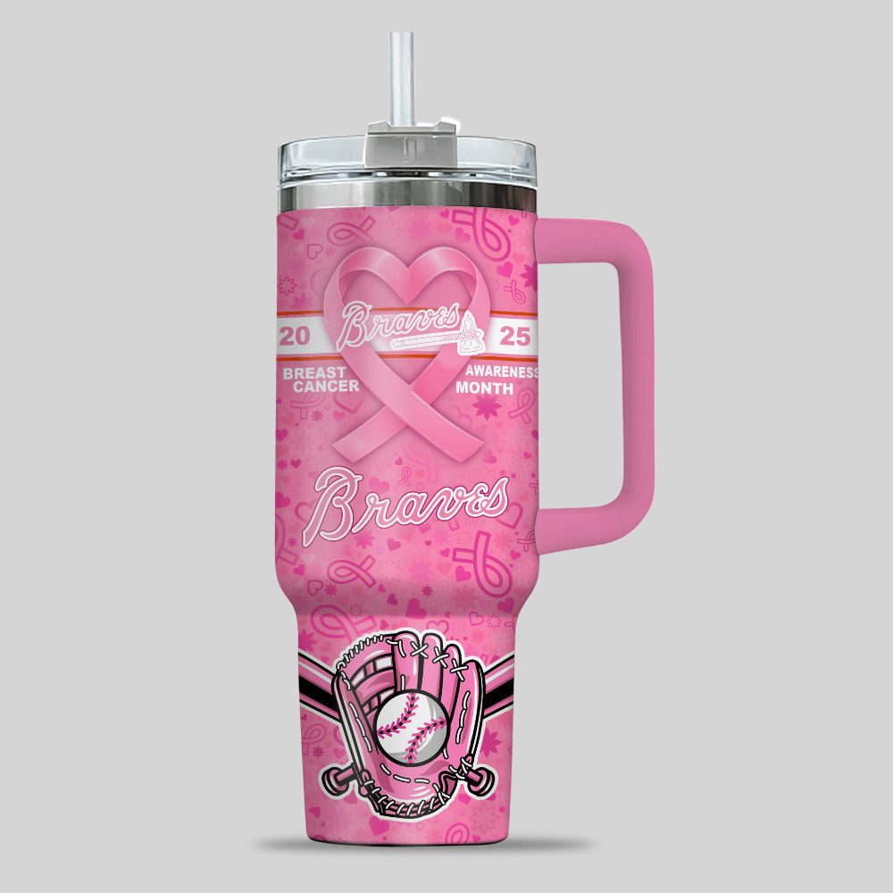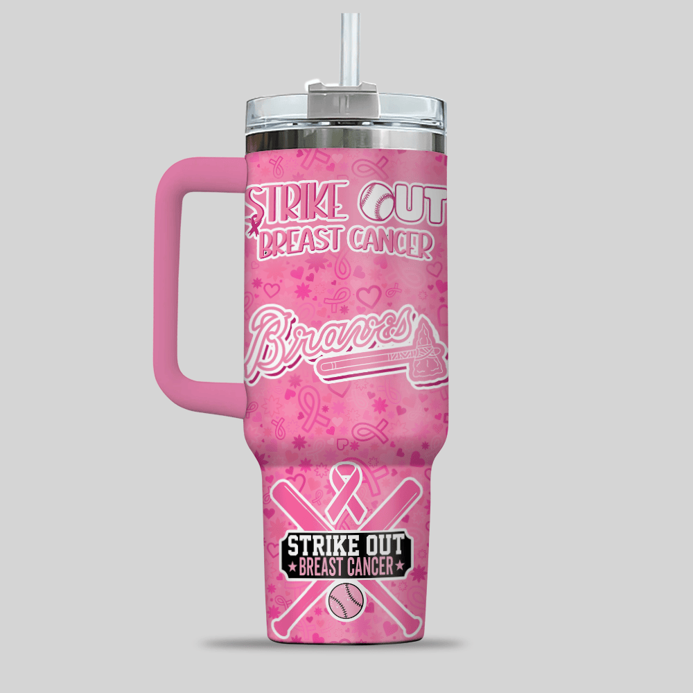 Atlanta Braves MLB x Breast Cancer Awareness Custom Stanley Quencher 40oz Stainless Steel Tumbler With Handle