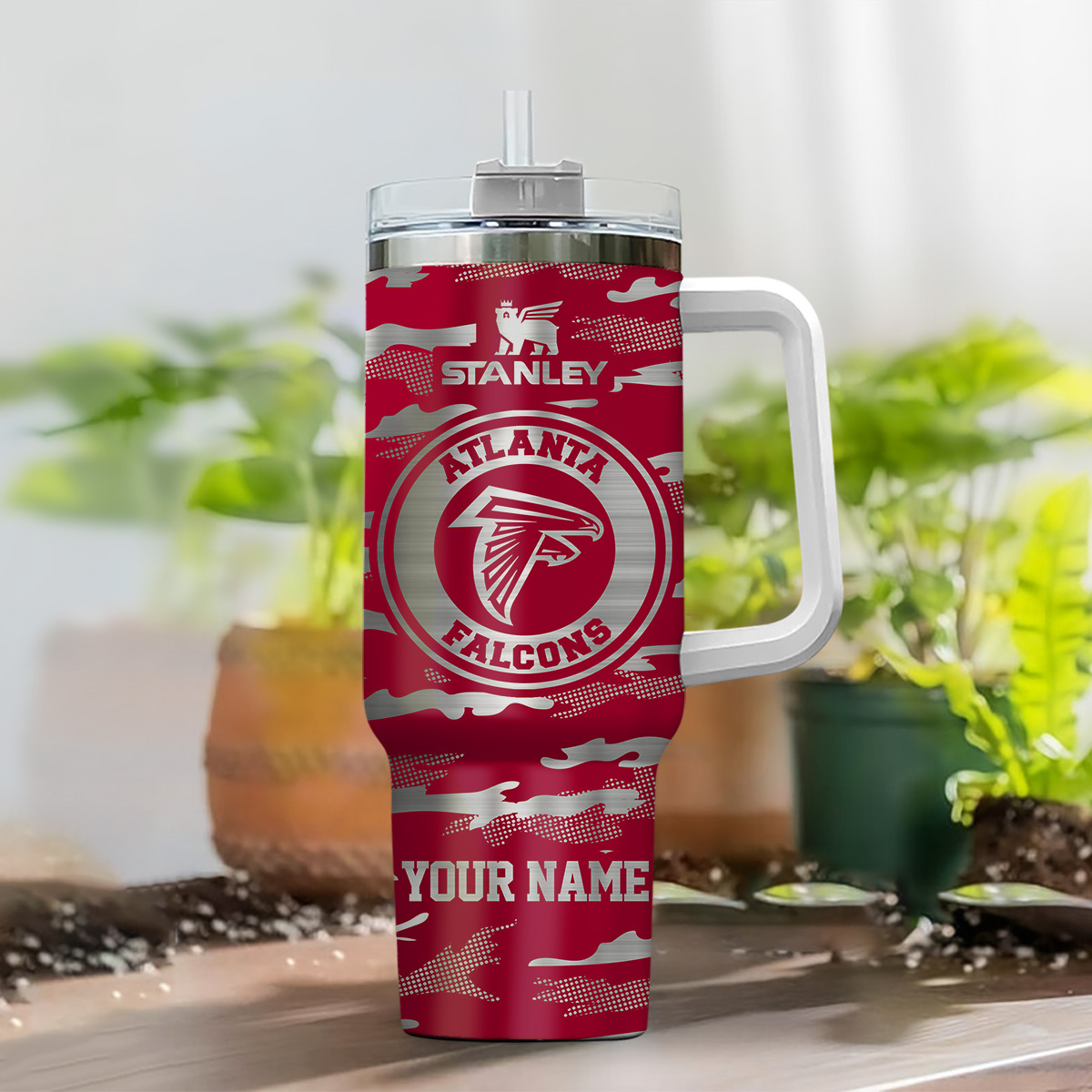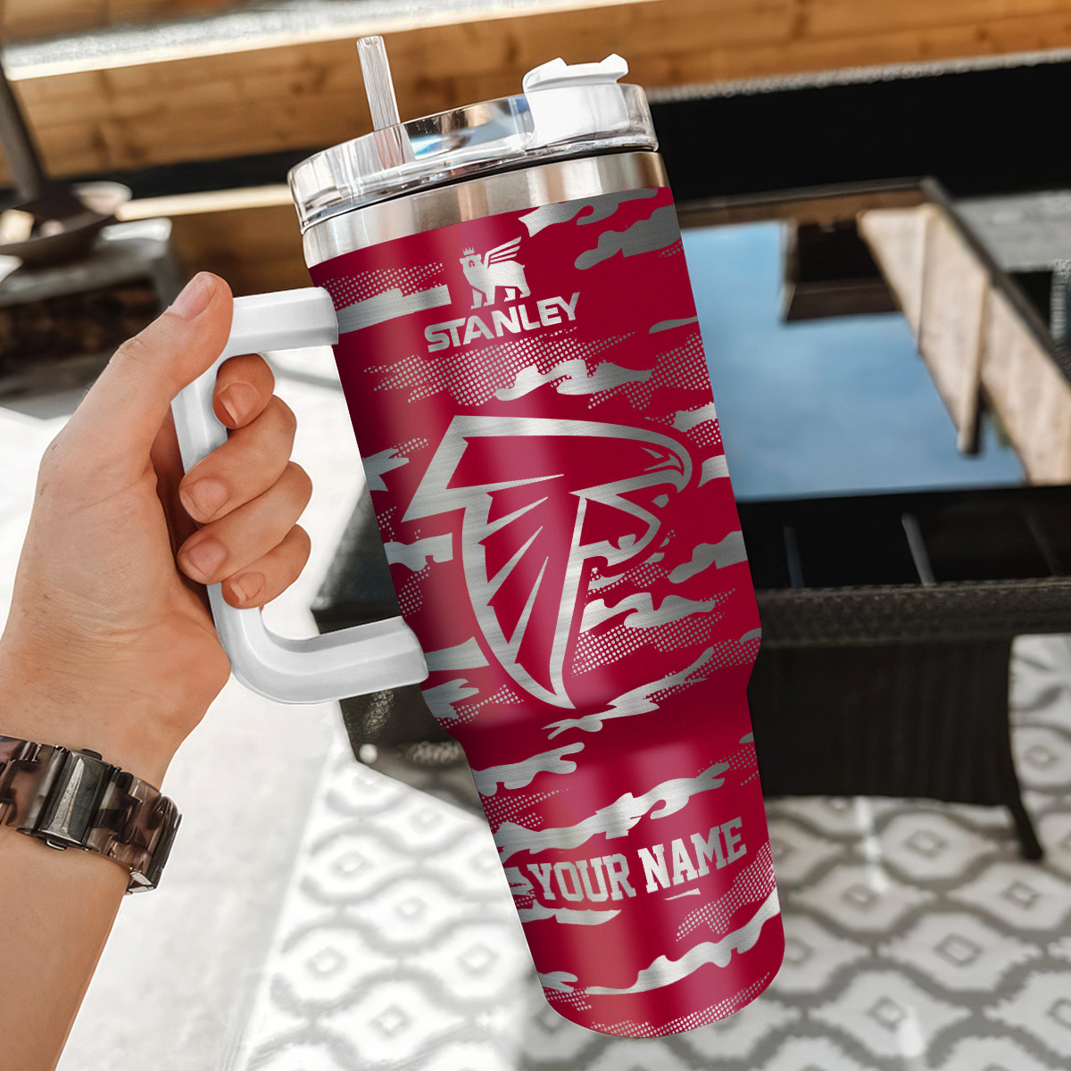Atlanta Falcons NFL Camo Pattern Custom Stanley Quencher 40oz Stainless Steel Tumbler With Handle