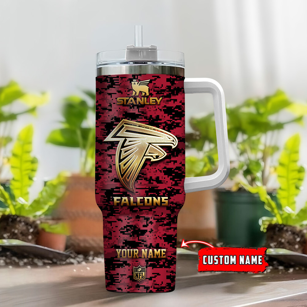 Atlanta Falcons NFL Camouflage Golden Logo Custom Stanley Quencher 40oz Stainless Steel Tumbler With Handle
