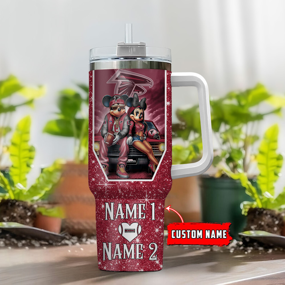 Atlanta Falcons NFL Mickey And Minnie Couple Custom Stanley Quencher 40oz Stainless Steel Tumbler With Handle