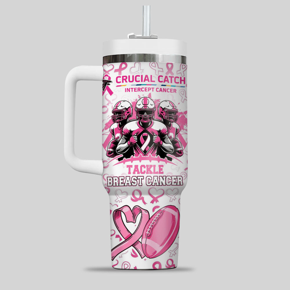 Atlanta Falcons NFL x Breast Cancer Awareness Custom Stanley Quencher 40oz Stainless Steel Tumbler With Handle