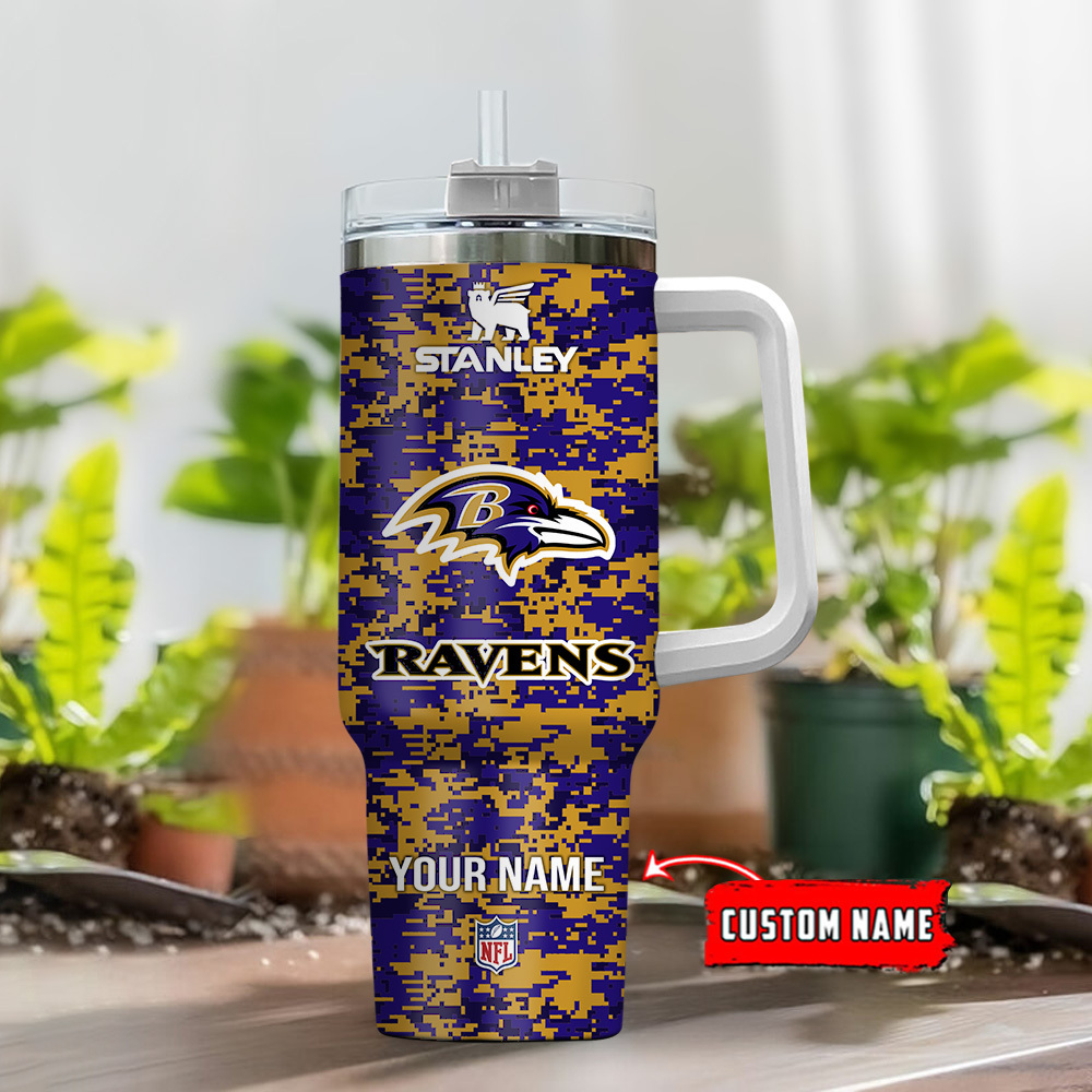 Baltimore Ravens NFL Camouflage Custom Stanley Quencher 40oz Stainless Steel Tumbler With Handle