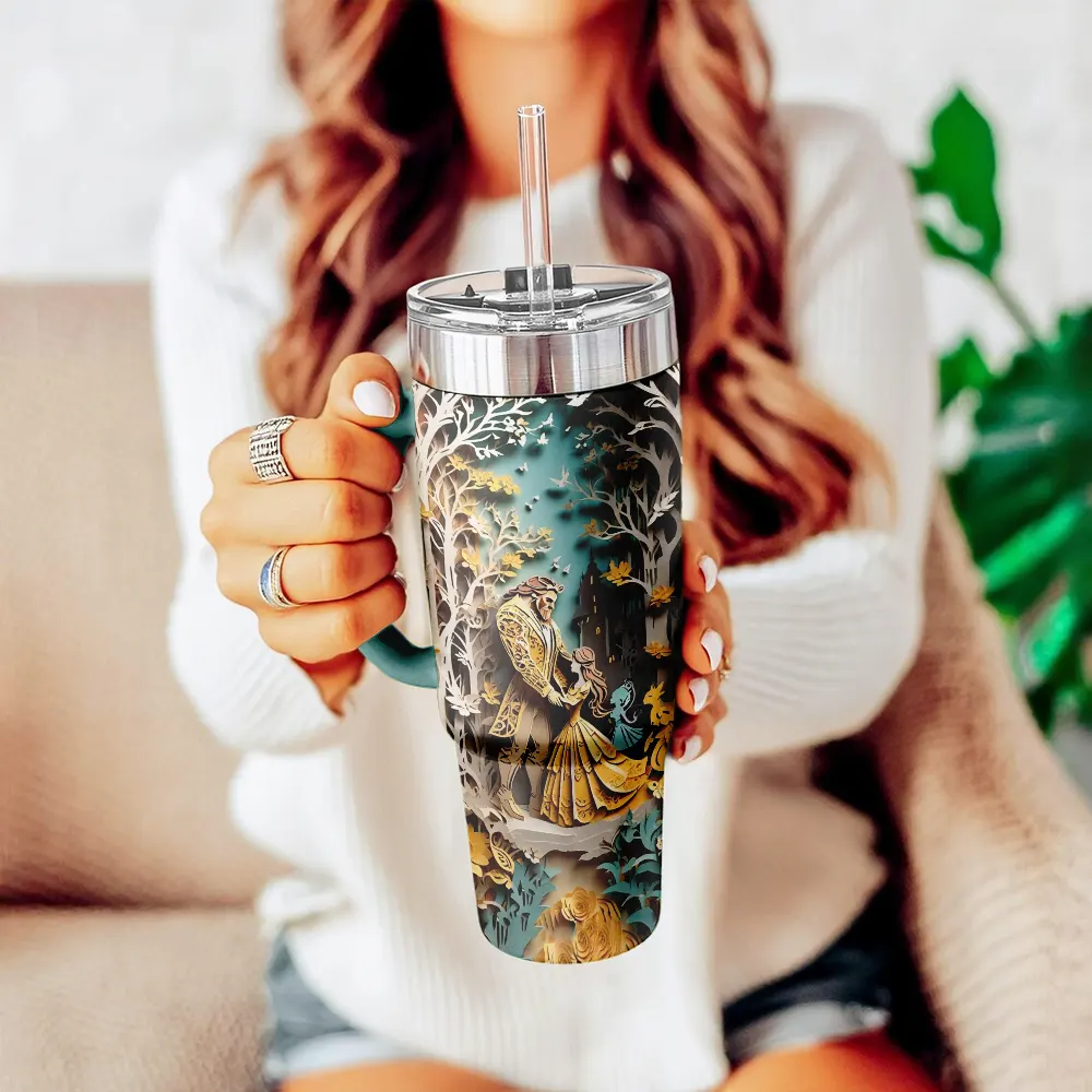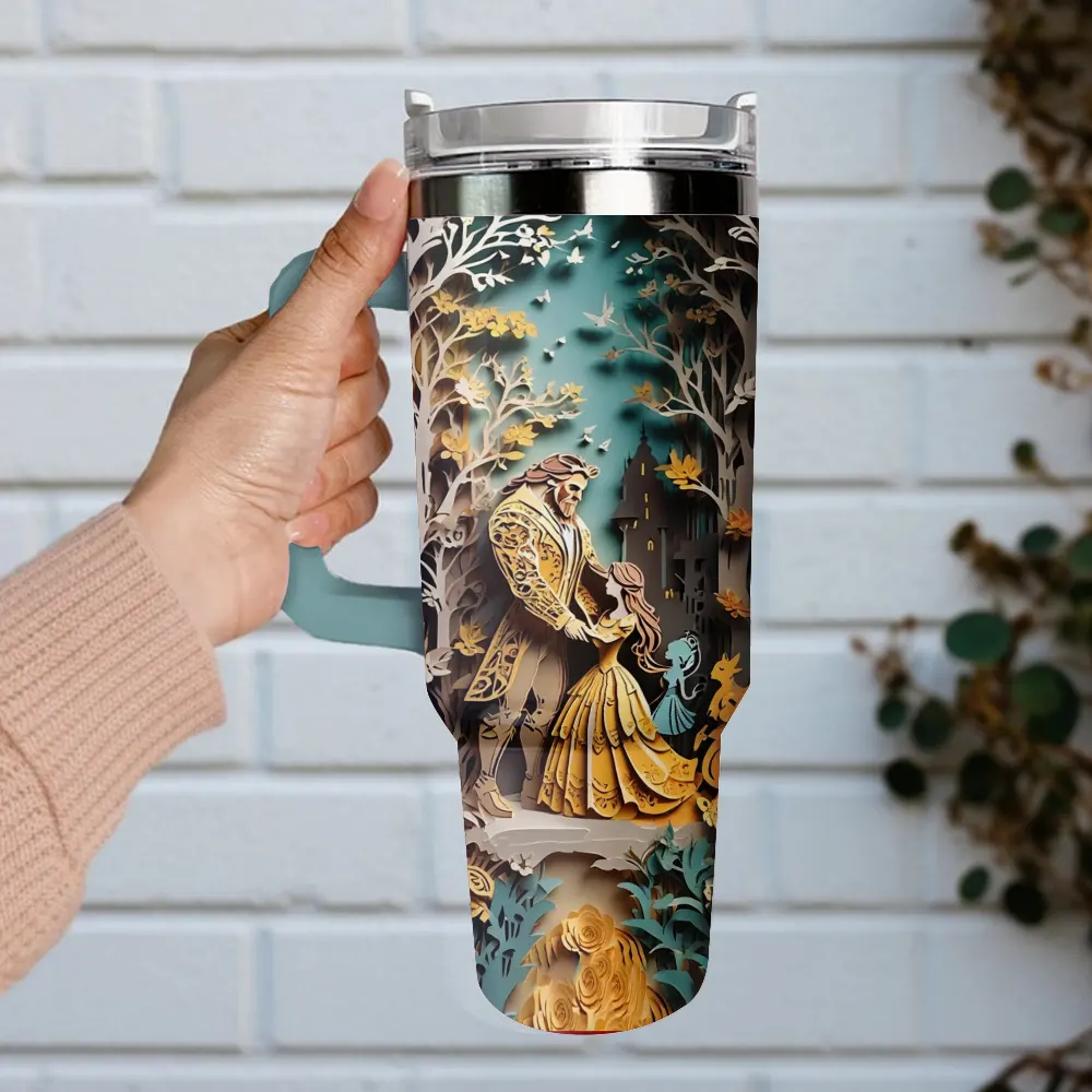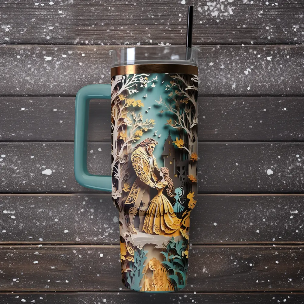 Beauty and the Beast Cartoon Custom Stanley Quencher 40oz Stainless Steel Tumbler With Handle