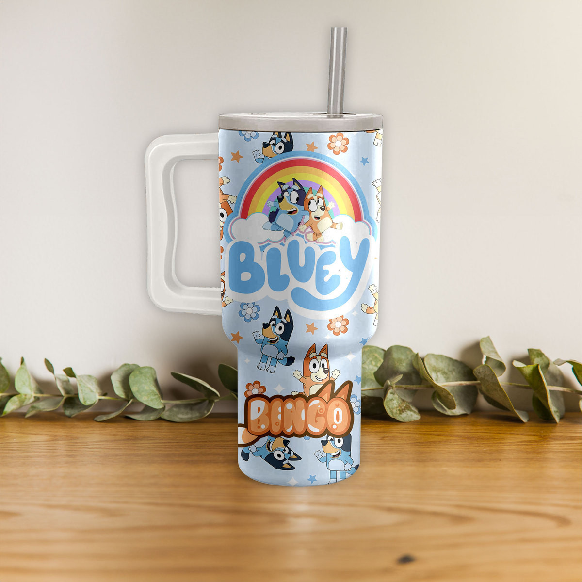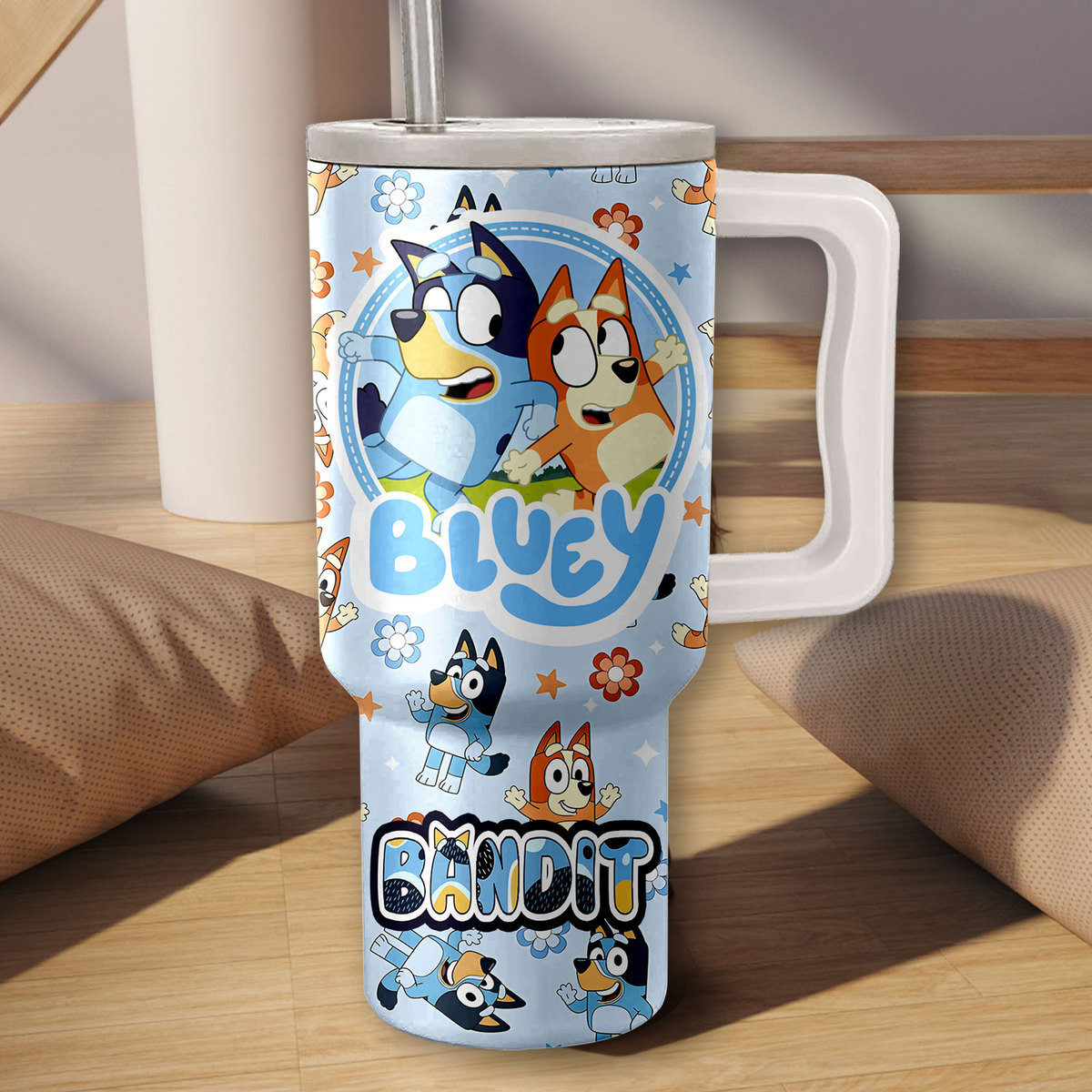 Bluey Cartoon Custom Stanley Quencher 40oz Stainless Steel Tumbler With Handle