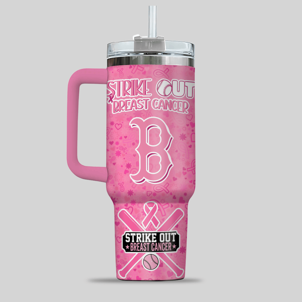Boston Red Sox MLB x Breast Cancer Awareness Custom Stanley Quencher 40oz Stainless Steel Tumbler With Handle