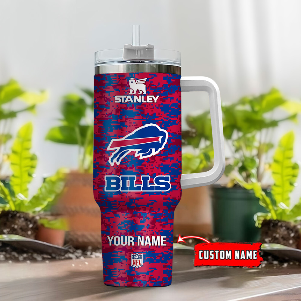 Buffalo Bills NFL Camouflage Custom Stanley Quencher 40oz Stainless Steel Tumbler With Handle