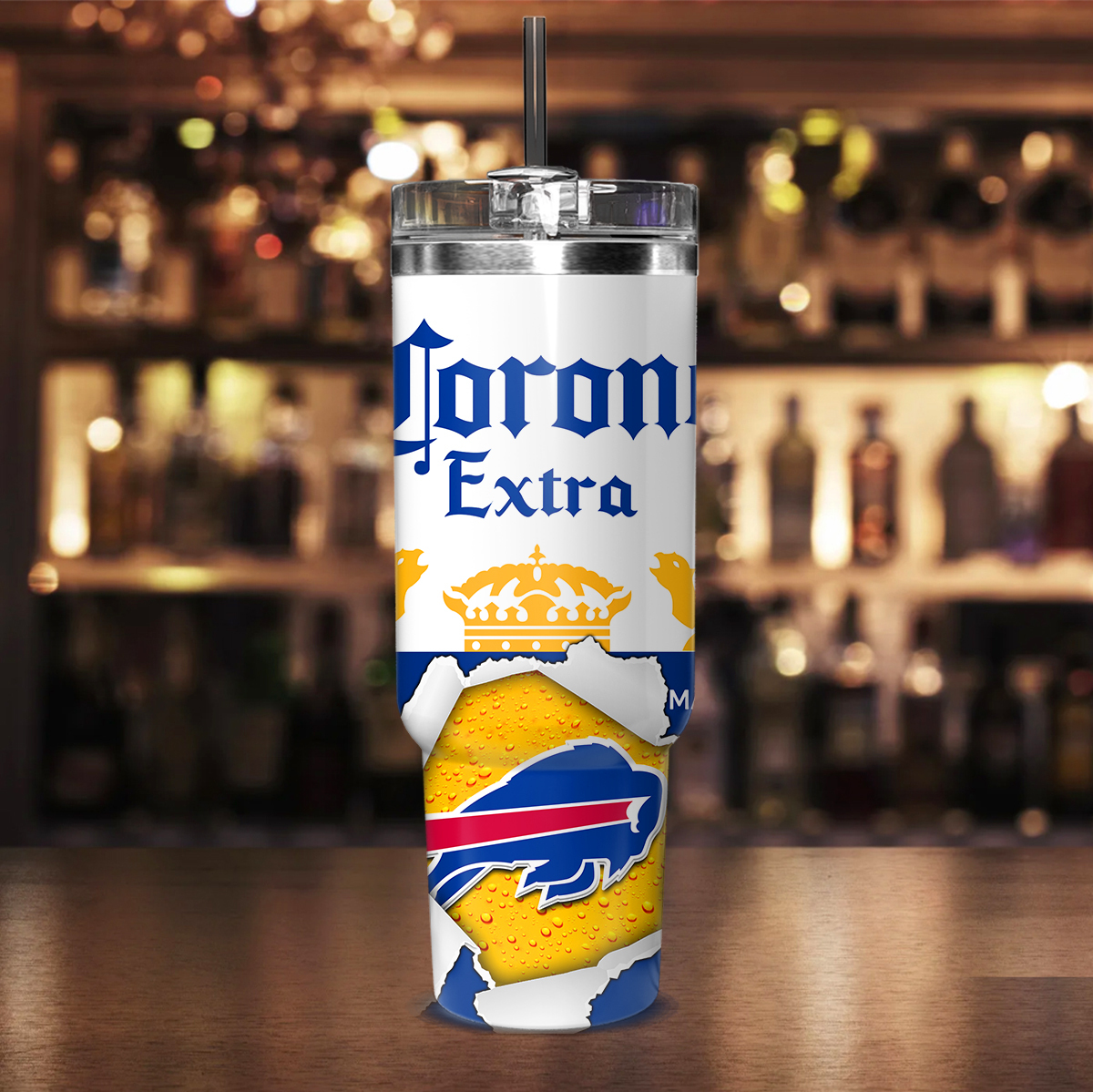 Buffalo Bills NFL Corona Extra Custom Stanley Quencher 40oz Stainless Steel Tumbler With Handle